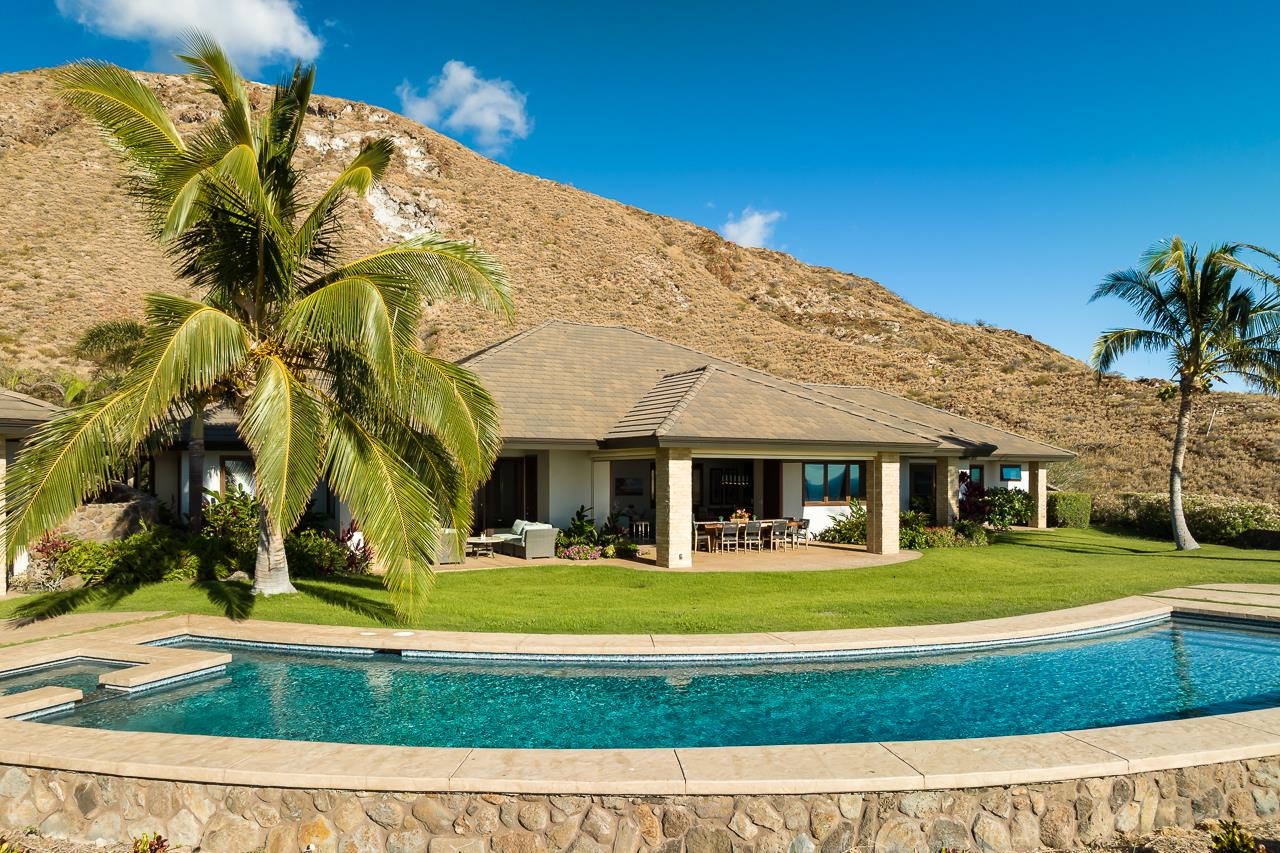 This is truly idyllic Maui living! Ultimate privacy, picturesque panoramic views, and a spacious modern home. Situated on a 2.75 acre cpr unit at the foot of the West Maui mountains, this gated 3,697 sq ft residence offers unobstructed, jaw dropping views on all sides. You will be admiring 3 islands from the unique curved lap pool and spa. The home features four ensuite bedrooms, an open floor plan indoor/outdoor living and dining space, a large media room, laundry room, and 3 car garage. A separated 328 sq ft detached pool house with a half bath and outdoor garden shower is ideal for an office or guest space. The covered outdoor spaces total 1,430 sf off each bedroom with private lanai patio's that capture the sun, breeze, and ocean with island views. Entertain by the pool and spa with a bbq and then dine on a custom made Monkeypod dining table while watching the sunset. Luxury finishes include a massive porcelain slab wall, expansive pocket doors, LED lighting, a gourmet kitchen with wolf appliances and a walk-in pantry, three outdoor natural rock showers, and automatic sun shades to keep the lanai cool. The expansive master bath with wrap around shower features dual shower heads and a soaking tub all with stunning ocean views. Nestled against Pu'u Mahanalua Nui, the mature tropical landscaping creates a cozy retreat. With Launiupoko Beach Park just down the hill, known for gatherings, beginner surfing, and a safe keiki tide pool for kids to play. The neighborhood also features three miles of walking trails and a welcoming community. Embrace the lifestyle you've been dreaming of in your new home!