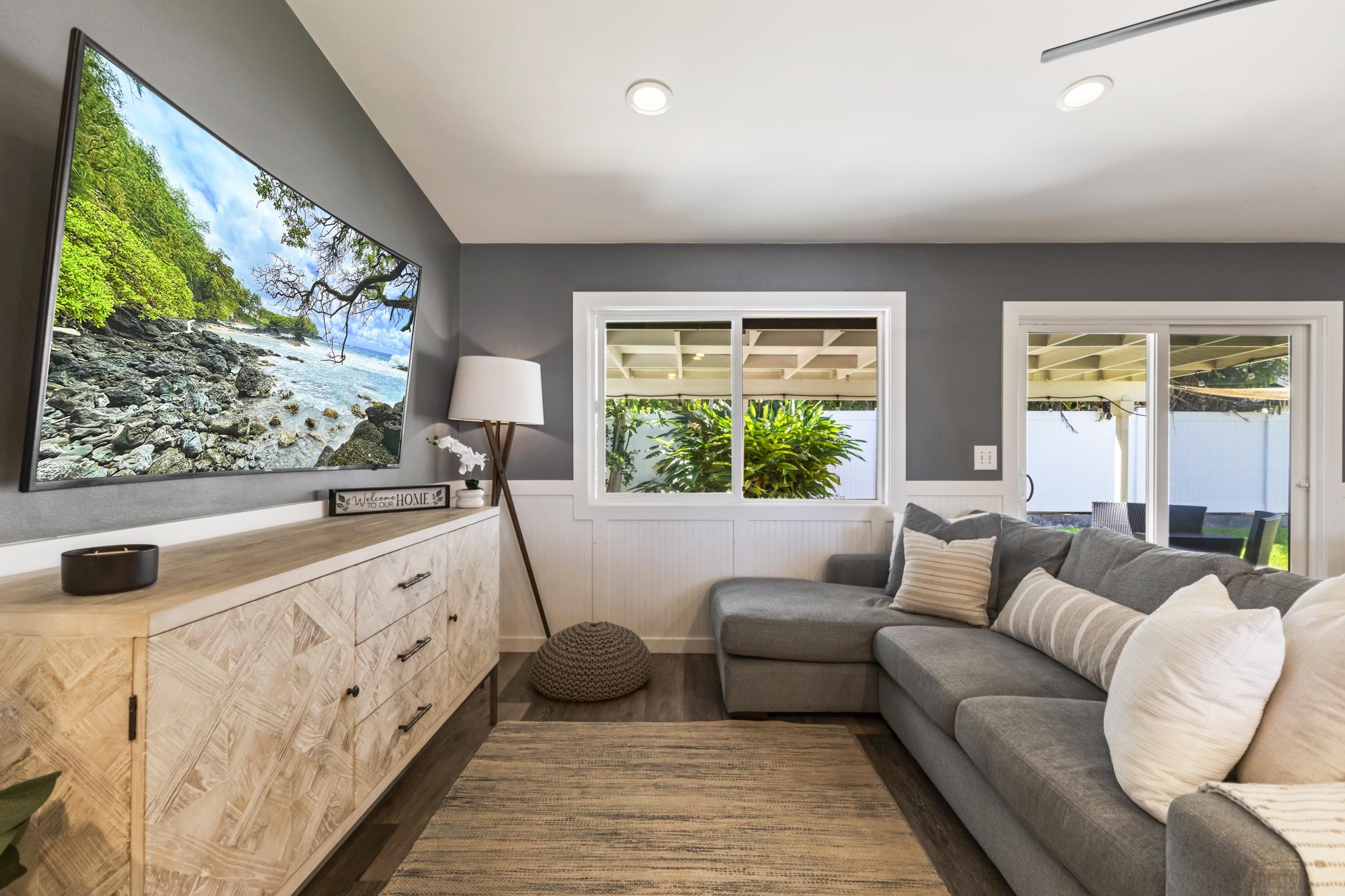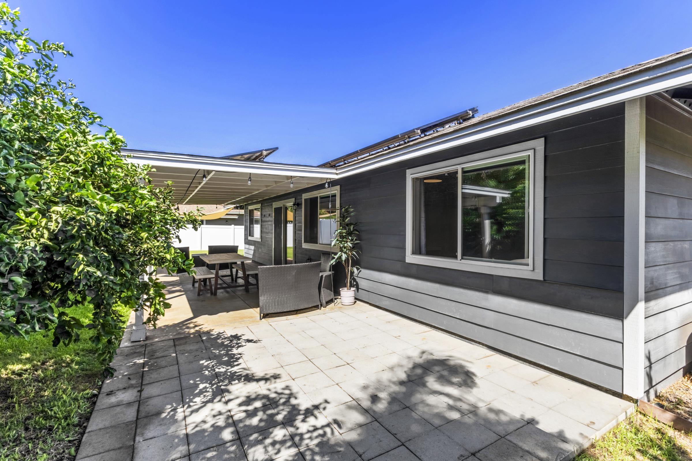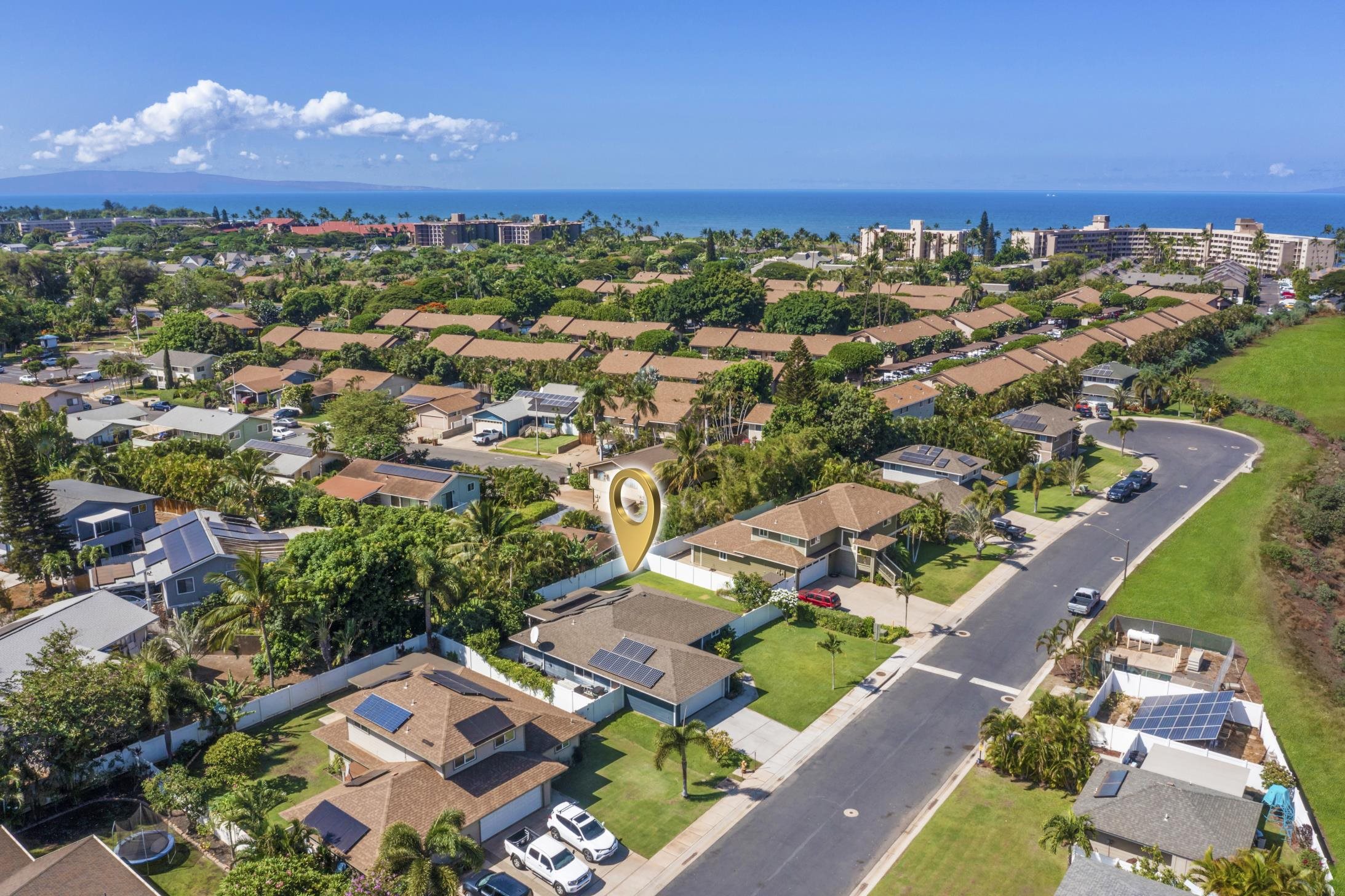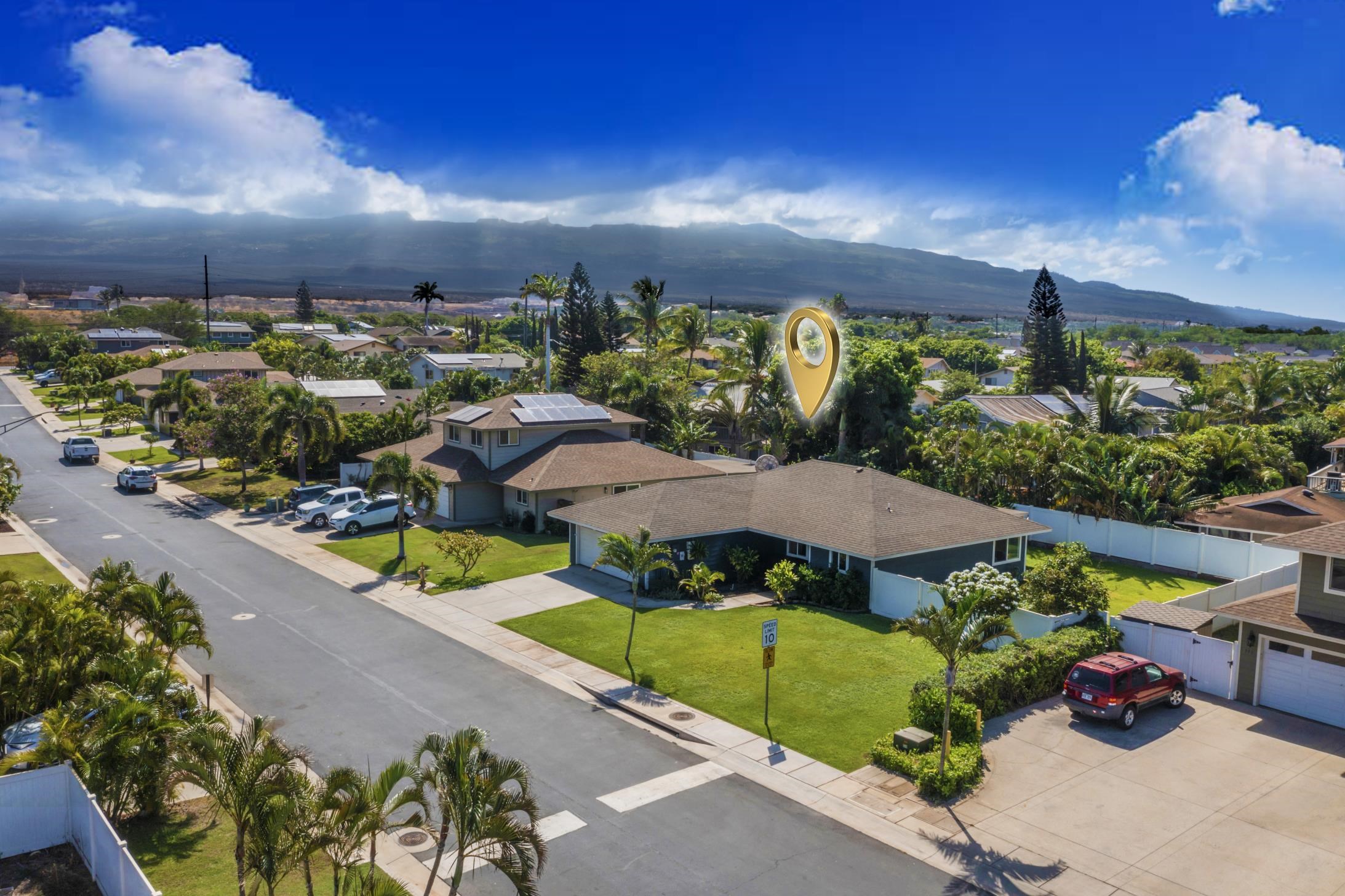 Welcome home to 35 Heona place, a beautifully remodeled single level residence, just moments away from the crystal blue waters in Kihei, Maui. This home is tucked within a natural private, family thriving, impeccable kept neighborhood of 18 homes. It rests on an expansive large lot, offering the perfect blend of privacy, space, and effortless island living. From the moment you arrive, the lush landscaping and inviting front yard create a sense of calm and welcome. Step inside to an open concept layout, highlighted by vaulted ceilings and modern finishes, filling the space with natural light and inviting feel. The kitchen is the heart of the home, featuring counter seating and clean, contemporary quartz countertops. A large sliding glass door opens to the outdoor living area, creating a seamless connection between the interior and the spacious backyard; perfect for entertaining, family play and gathering, relaxing, dining, or enjoying Maui’s ocean breeze. The master suite is thoughtfully positioned on one side of the home, offering a serene retreat with a spacious ensuite bath, an expansive double shower and beautiful double vanity.On the opposite side, two additional bedrooms and a full bath provide comfort and flexibility for family or guests. Outside, the property truly shines. The back yard is fully fenced with a large open space and lush grass to play. There is an array of mature fruit trees, including lilikoi vines, citrus, guava, dragon fruit, lime, papaya and avocado. Garden boxes for convenient gardening. Modern comforts include central air conditioning and owned photovoltaic panels for energy efficiency and low utility costs. Not only is this home located in a quiet, family friendly cul de sac, it’s also just minutes from Piilani Village Shopping Center, ono dining options and sandy beaches; offering both quality living and convenience. This rare gem captures the essence of aloha modern island living.