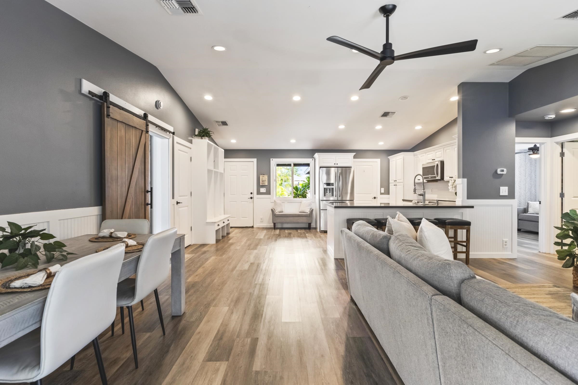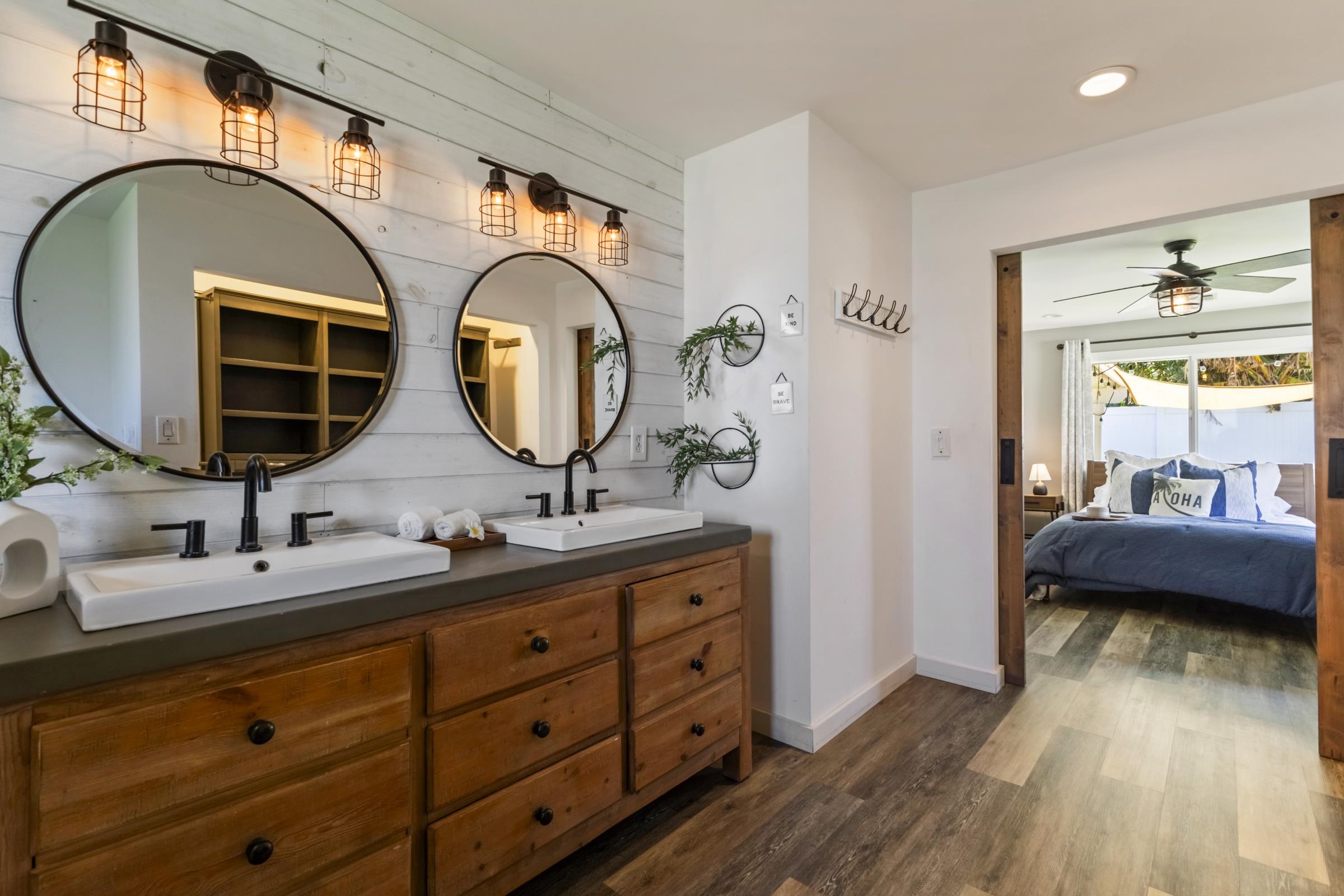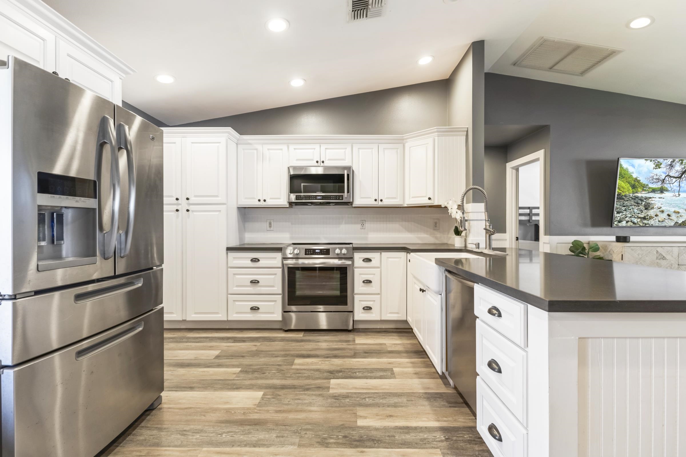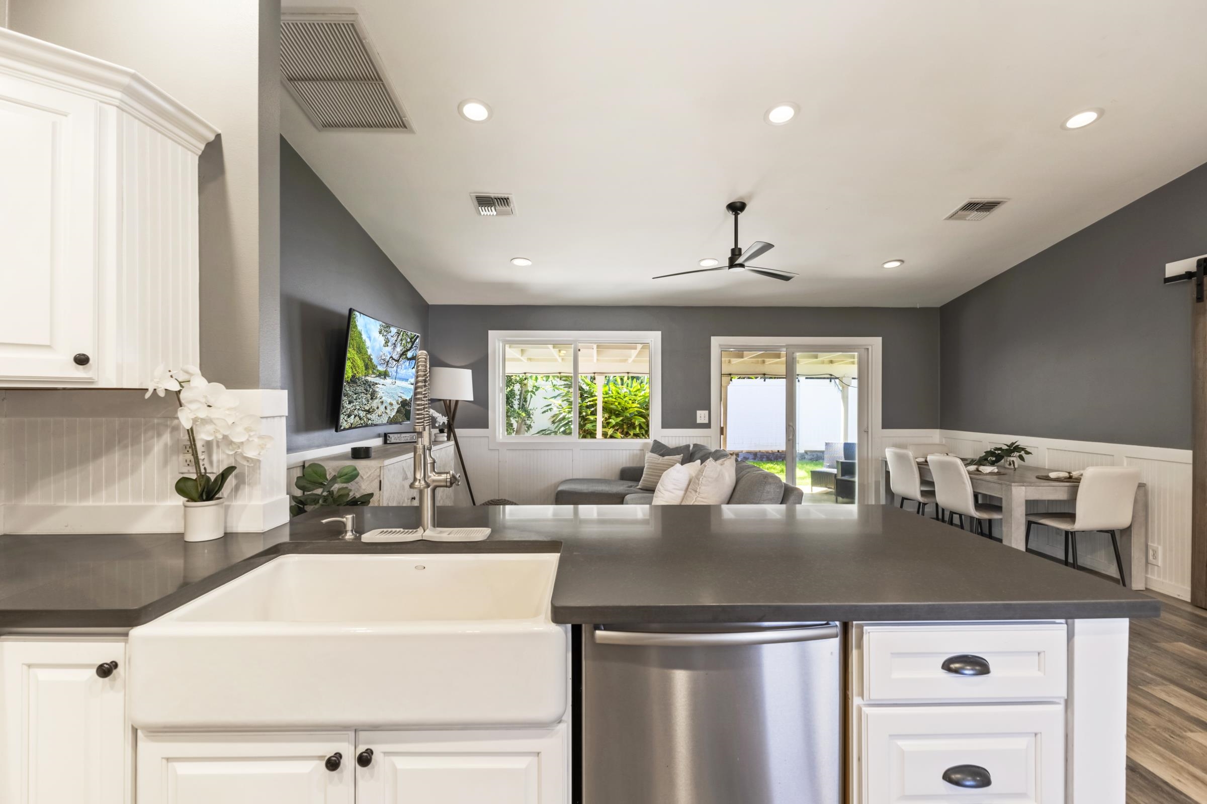 Welcome home to 35 Heona place, a beautifully remodeled single level residence, just moments away from the crystal blue waters in Kihei, Maui. This home is tucked within a natural private, family thriving, impeccable kept neighborhood of 18 homes. It rests on an expansive large lot, offering the perfect blend of privacy, space, and effortless island living. From the moment you arrive, the lush landscaping and inviting front yard create a sense of calm and welcome. Step inside to an open concept layout, highlighted by vaulted ceilings and modern finishes, filling the space with natural light and inviting feel. The kitchen is the heart of the home, featuring counter seating and clean, contemporary quartz countertops. A large sliding glass door opens to the outdoor living area, creating a seamless connection between the interior and the spacious backyard; perfect for entertaining, family play and gathering, relaxing, dining, or enjoying Maui’s ocean breeze. The master suite is thoughtfully positioned on one side of the home, offering a serene retreat with a spacious ensuite bath, an expansive double shower and beautiful double vanity.On the opposite side, two additional bedrooms and a full bath provide comfort and flexibility for family or guests. Outside, the property truly shines. The back yard is fully fenced with a large open space and lush grass to play. There is an array of mature fruit trees, including lilikoi vines, citrus, guava, dragon fruit, lime, papaya and avocado. Garden boxes for convenient gardening. Modern comforts include central air conditioning and owned photovoltaic panels for energy efficiency and low utility costs. Not only is this home located in a quiet, family friendly cul de sac, it’s also just minutes from Piilani Village Shopping Center, ono dining options and sandy beaches; offering both quality living and convenience. This rare gem captures the essence of aloha modern island living.