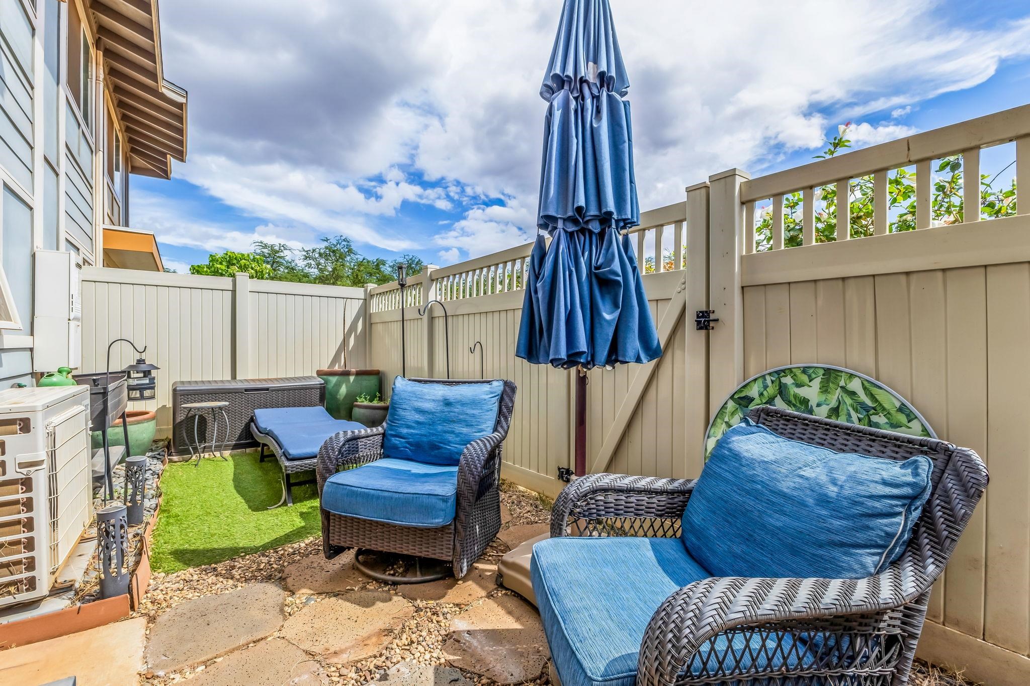 Opportunity knocking!! New to the market, this 3 bedroom, 2.5 bathroom Townhomes at Kehalani in north Kihei is currently the only townhome available at the time of listing! It is the rare condo in Kihei that has a garage! Conveniently located, you have convenient access to the nearby Sugar Beach, Piikea Shopping Center, restaurants and are a quick drive to Kahului, Costco or south to Wailea. Unit 1902 includes updated luxury vinyl flooring downstairs and in the bathrooms, carpeted bedrooms upstairs and four (4) split A/C units throughout. Bedrooms are all upstairs as is your own laundry. Main bed and bath suite has a walk in shower. Custom window shutters and ceiling fans are nice upgraded touches. Your own fenced, private yard provides you with outdoor living space off the kitchen/living area where you can BBQ and hang out! The kitchen features granite countertops, stainless appliances and an energy efficient gas Samsung range. This townhome offers a one car garage with an additional parking space in the driveway. In the back of the complex, this unit backs up to an open area with no neighbors behind you. Kamalani is a pet friendly complex. Water, sewer, trash, high speed internet, common area maintenance, reserves and exterior building insurance are all included in monthly maintenance fee. Schedule a showing today so you don’t miss this opportunity!
