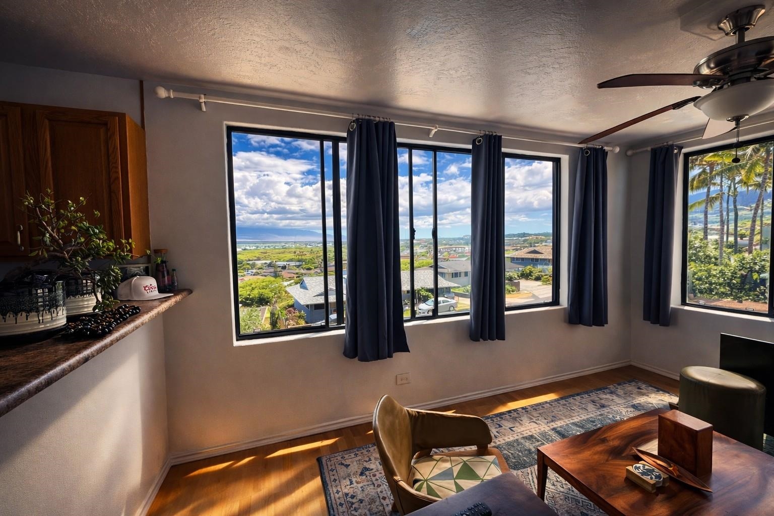 Unit 204 at Mount Thomas is a 2-bedroom, 1.5-bath apartment located in central Maui. The unit features large picture windows on two sides of the living area, providing natural light and views of Haleakala, Kahului Harbor, and the Central Valley. The building is secured, and the unit includes one assigned parking stall. Mount Thomas is conveniently located near Kahului town services, medical facilities, schools, shopping, and major roadways, offering practical access to daily needs and island connectivity. Mount Thomas is centrally located in Wailuku, within close proximity to Maui Memorial Medical Center, UH Maui College, parks, shopping, dining, business centers, and Kahului Airport. The location provides convenient access to major services and transportation corridors. The complex features secured entry, an elevator, and a centralized interior courtyard. Residents benefit from walkability to nearby parks and schools, as well as a shared courtyard space within a small, maintained building. Unit 204 offers a practical opportunity for homeownership in Central Maui, combining a central Wailuku location with open views and secure building access. The unit’s position within the building provides natural light, visibility over the surrounding area, and the added benefit of a secured residential complex suited for everyday living.