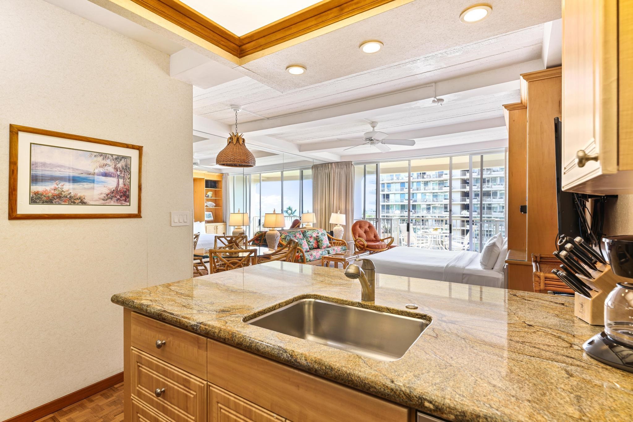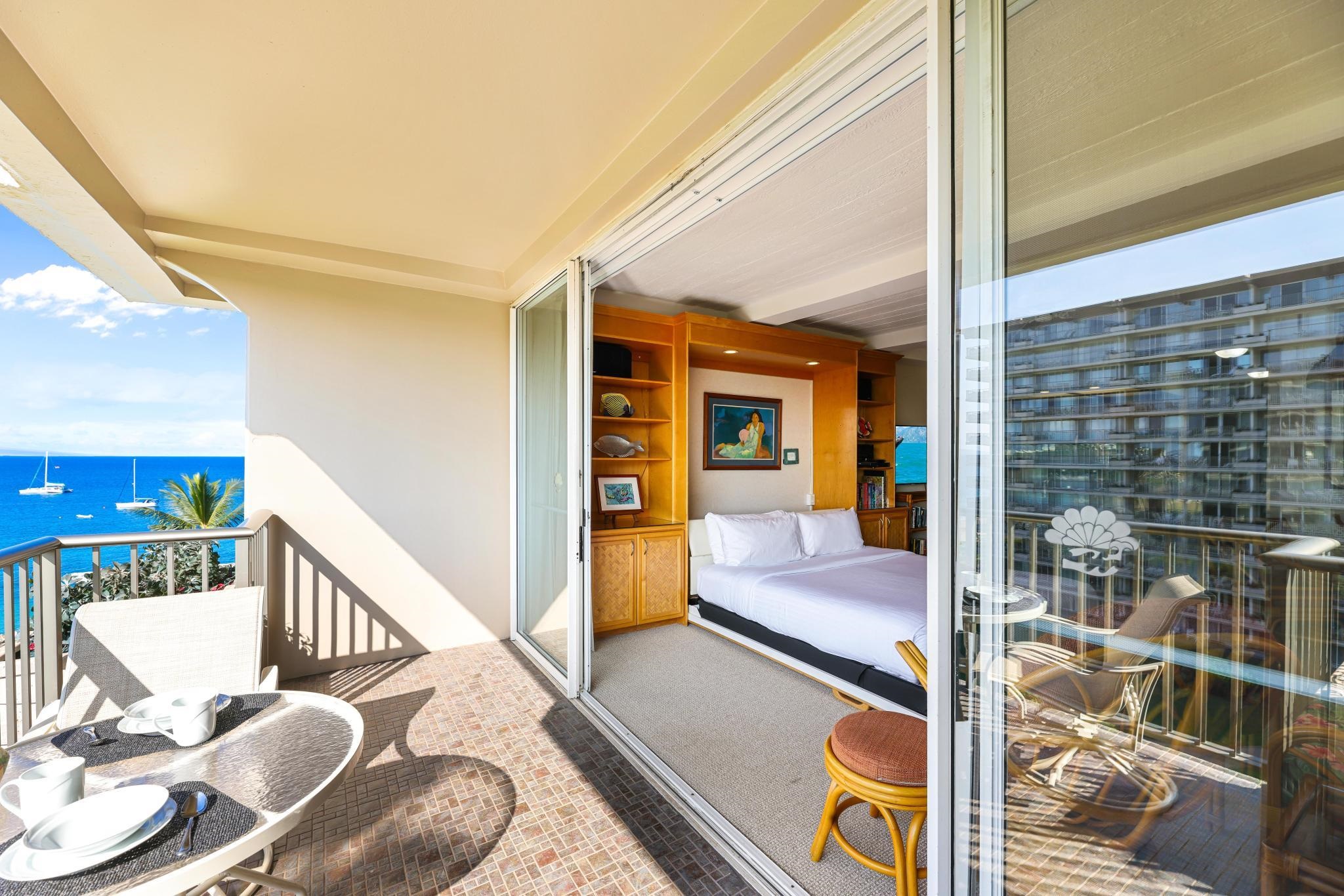 Whaler 713 - Amazing opportunity to own Ocean view studio at the Whaler on Kaanapali Beach! This beautiful studio offers spectacular ocean views from the 7th floor inner courtyard of Whaler Tower I. Beachfront living at its finest on the Sun-kissed sands of Kaanapali. Spend your winters looking at Maui's beautiful humpback whales breaching in the distant towards the neighbor island of Lana'i. The Whaler is ideally situated in the heart of Kaanapali Beach and a short distance from the famed Black Rock where snorkeling and beach activities await. This beach front playground features a swimming pool, private fitness center, tennis and pickleball courts, underground parking, and meticulously landscaped, tropical grounds with Koi fish pond. Directly in front of the sand shoreline are miles of white sandy beach, ocean activities, snorkeling, sailing, and beautiful year-round sunsets. Next-door is Whalers Village shopping center with an array of shops and restaurants. Unit features granite countertops, custom cabinetry, Murphy bed, new stainless steel appliances, and free laundry facilities are located nearby on the floor. Maintenance fees include all utilities e.g. electric, central A/C, water, sewer, trash, Wi-Fi access, cable, TV, local phone, service, storm, flood, and general liability insurance as well as Security. The maintenance fees also include a monthly contribution to a reserve fund for major components of the building e.g. roof, painting, pools, spas, and other amenities. This unit is in a vacation rental program and can be shown when vacant by appointment.