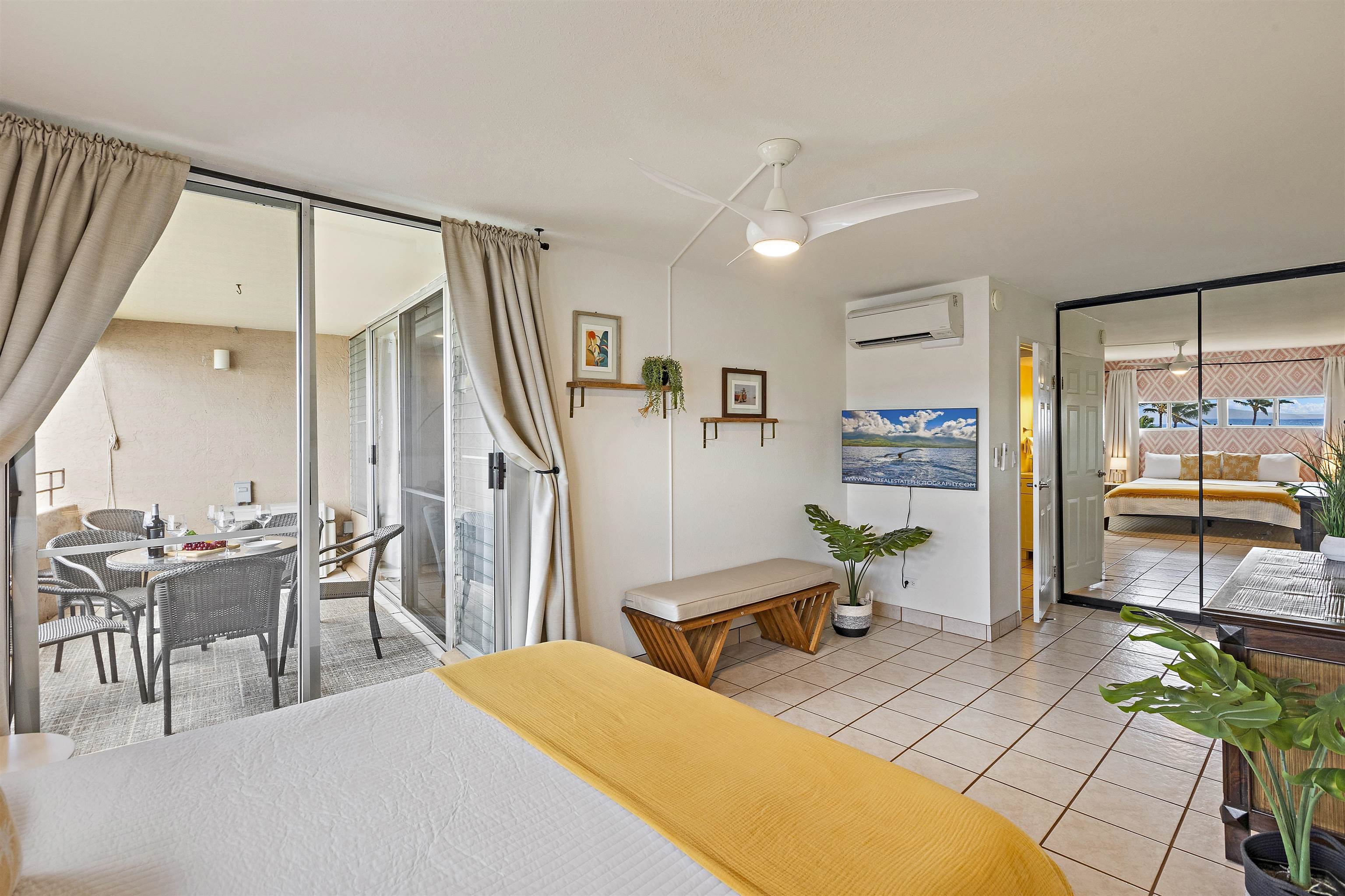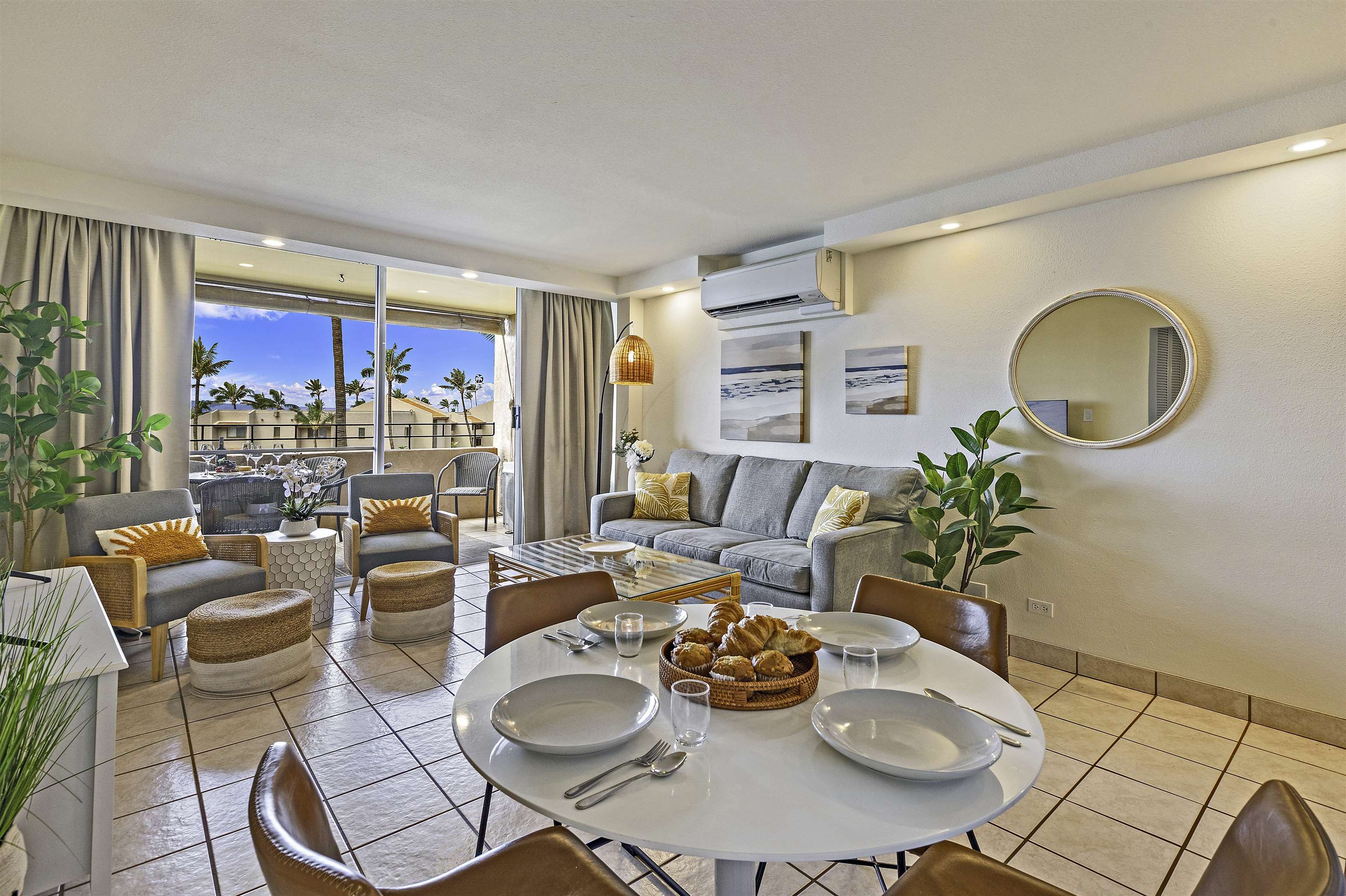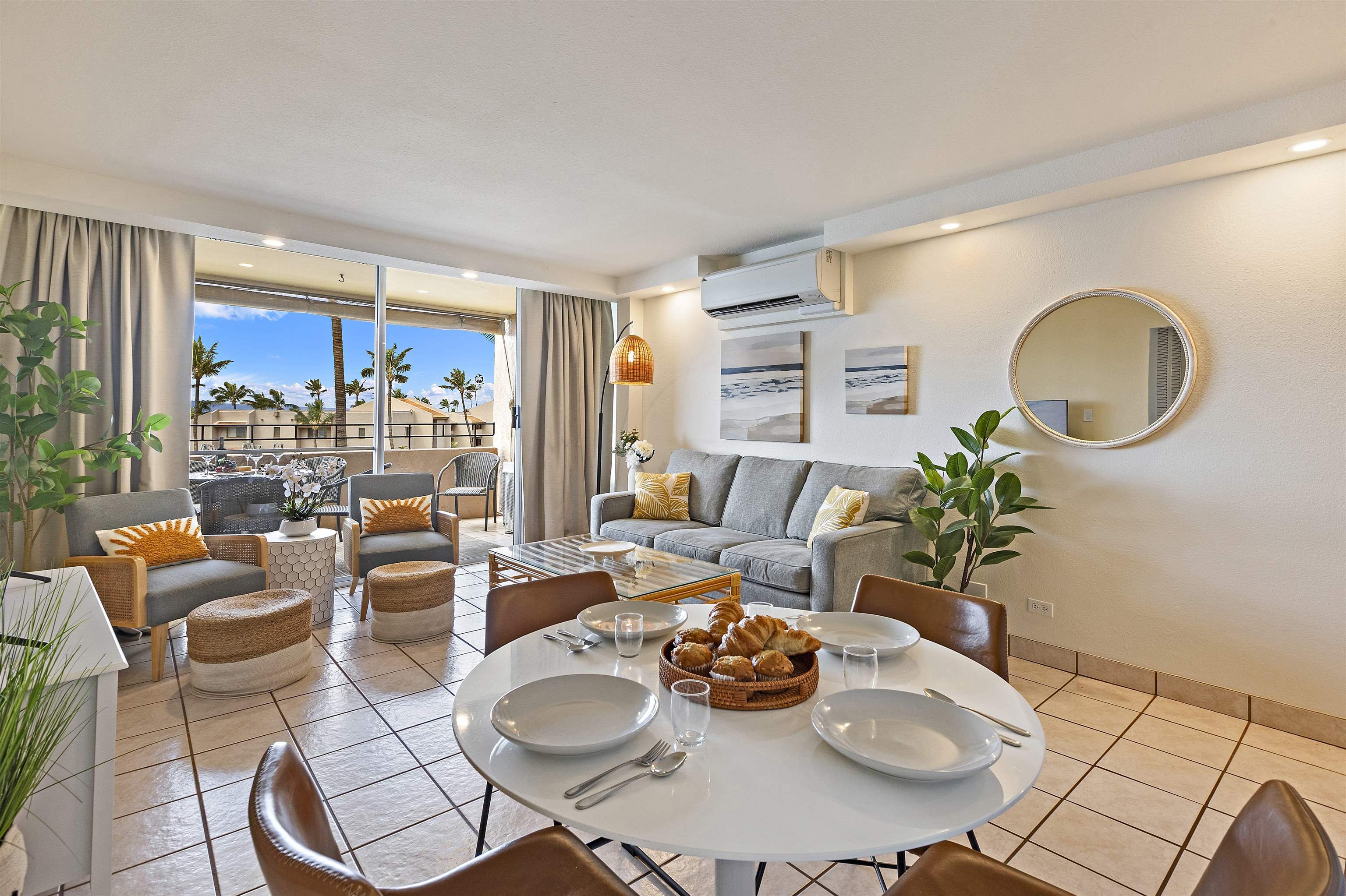 Highly sought-after oceanfront 5th-floor condo in one of Maalaea’s most desirable buildings. Enjoy spectacular ocean and outer-island views from your private covered lanai. Beautifully remodeled in 2022 with new kitchen cabinets and countertops, updated bathroom vanities, and split-system A/C in all rooms. Tile flooring throughout extends seamlessly to the spacious lanai. Offered fully furnished with assigned parking. Ideally located just a short walk to the beach, Maalaea Harbor, Maui Ocean Center, shops, and restaurants.