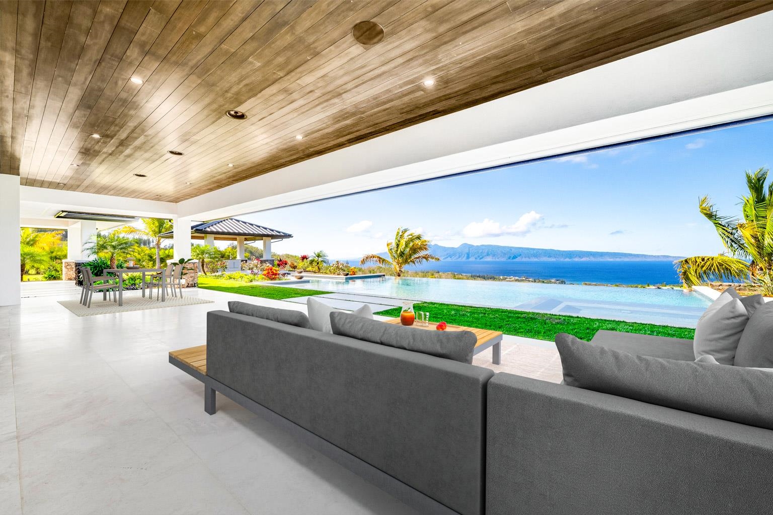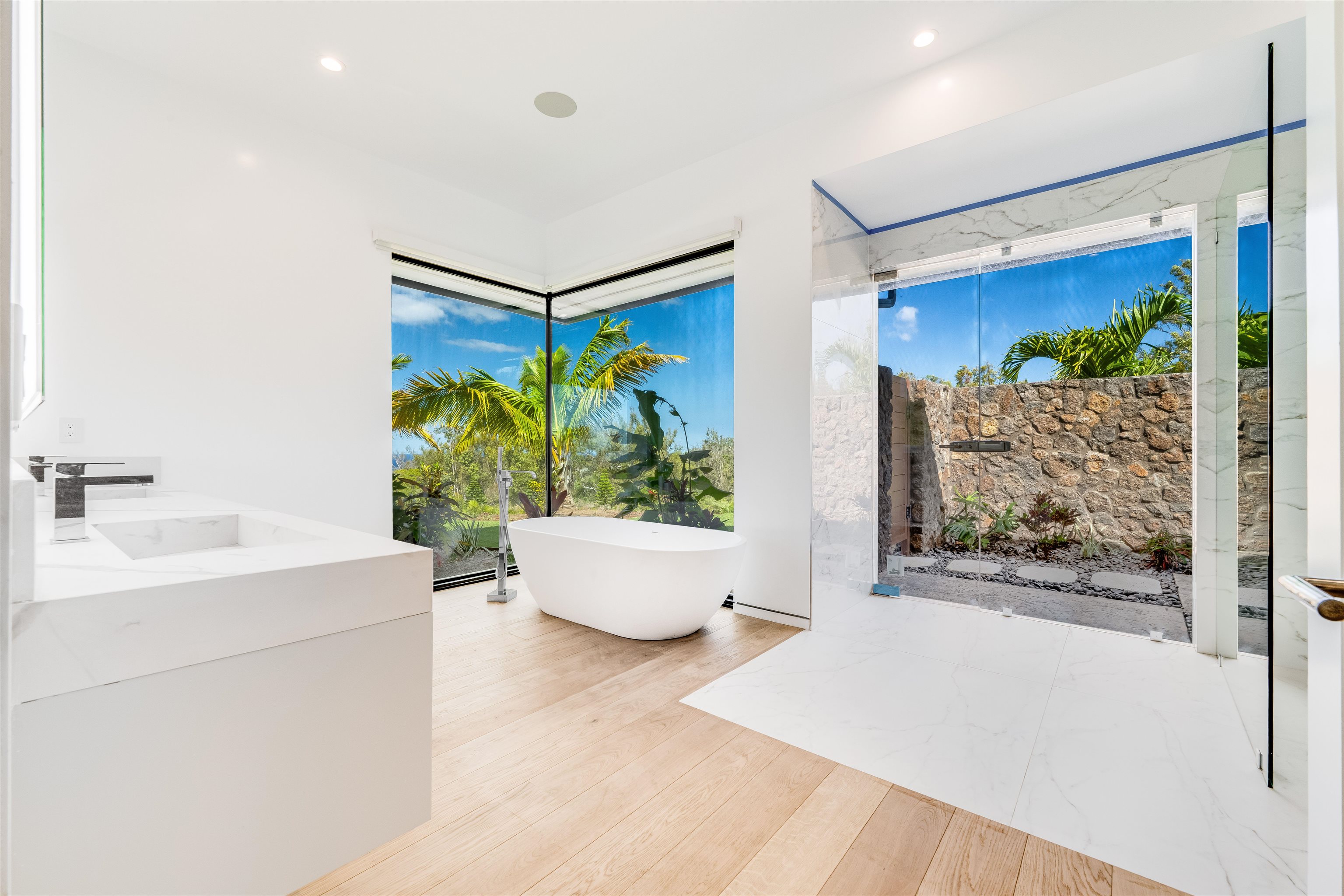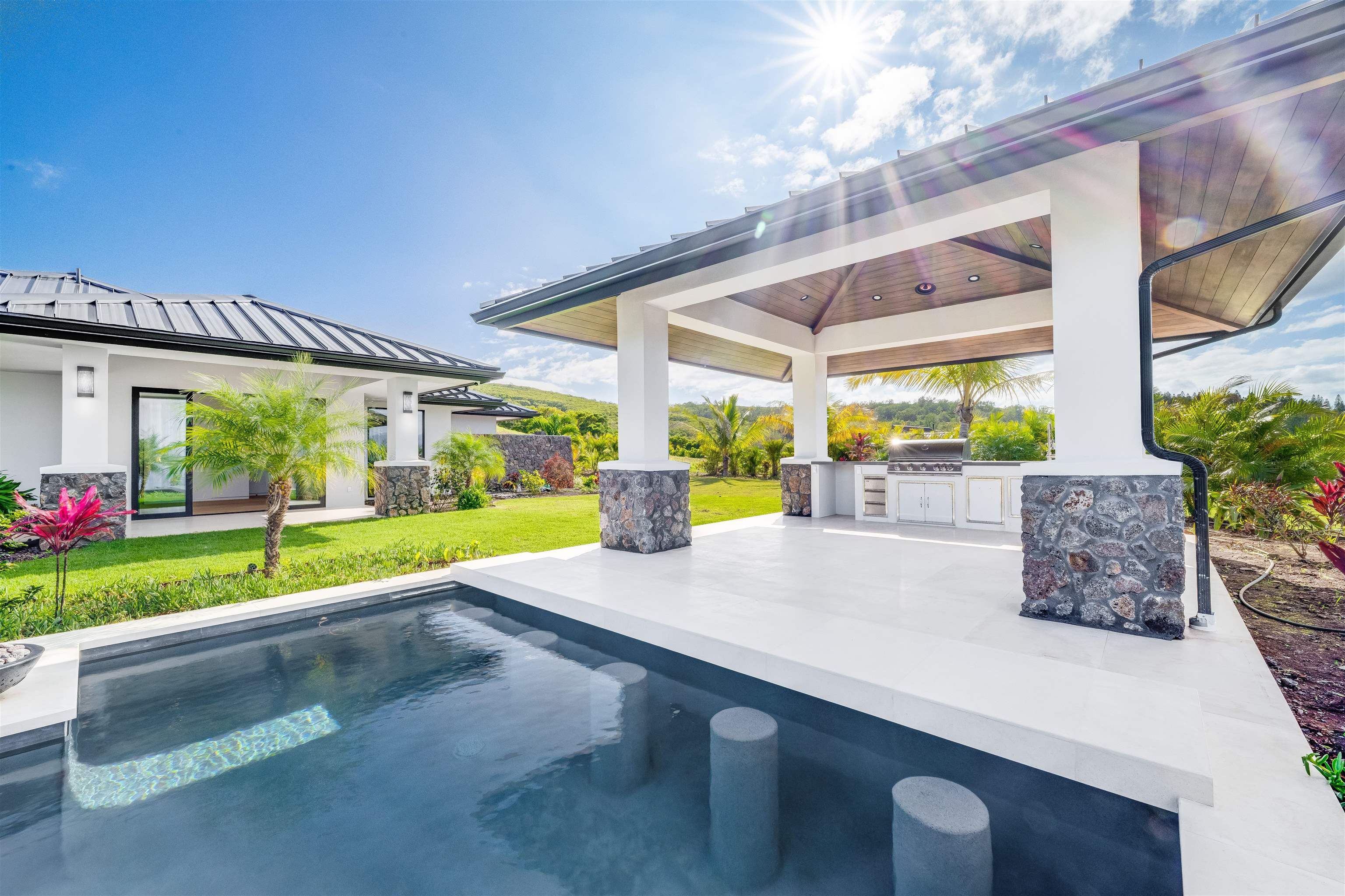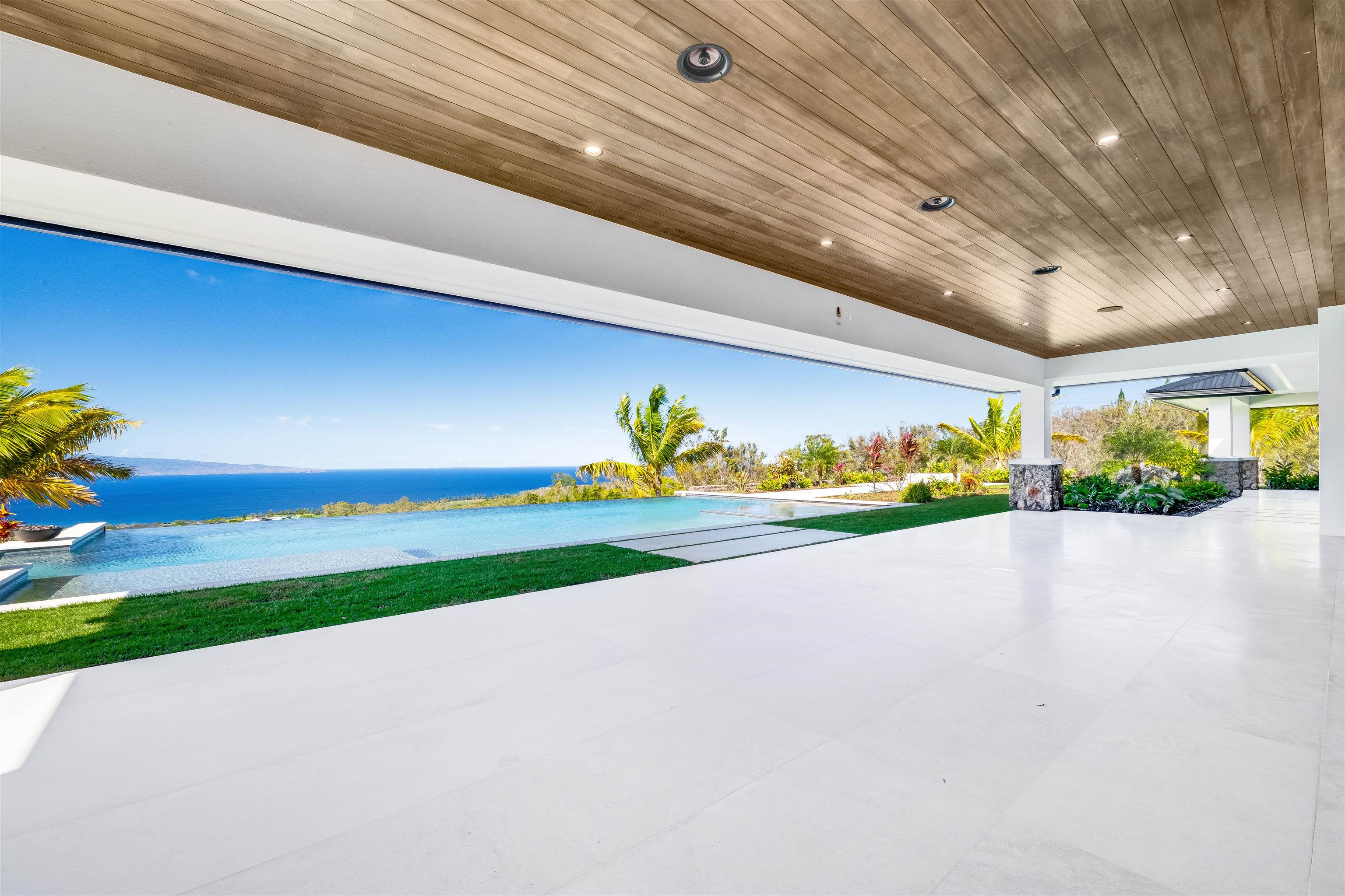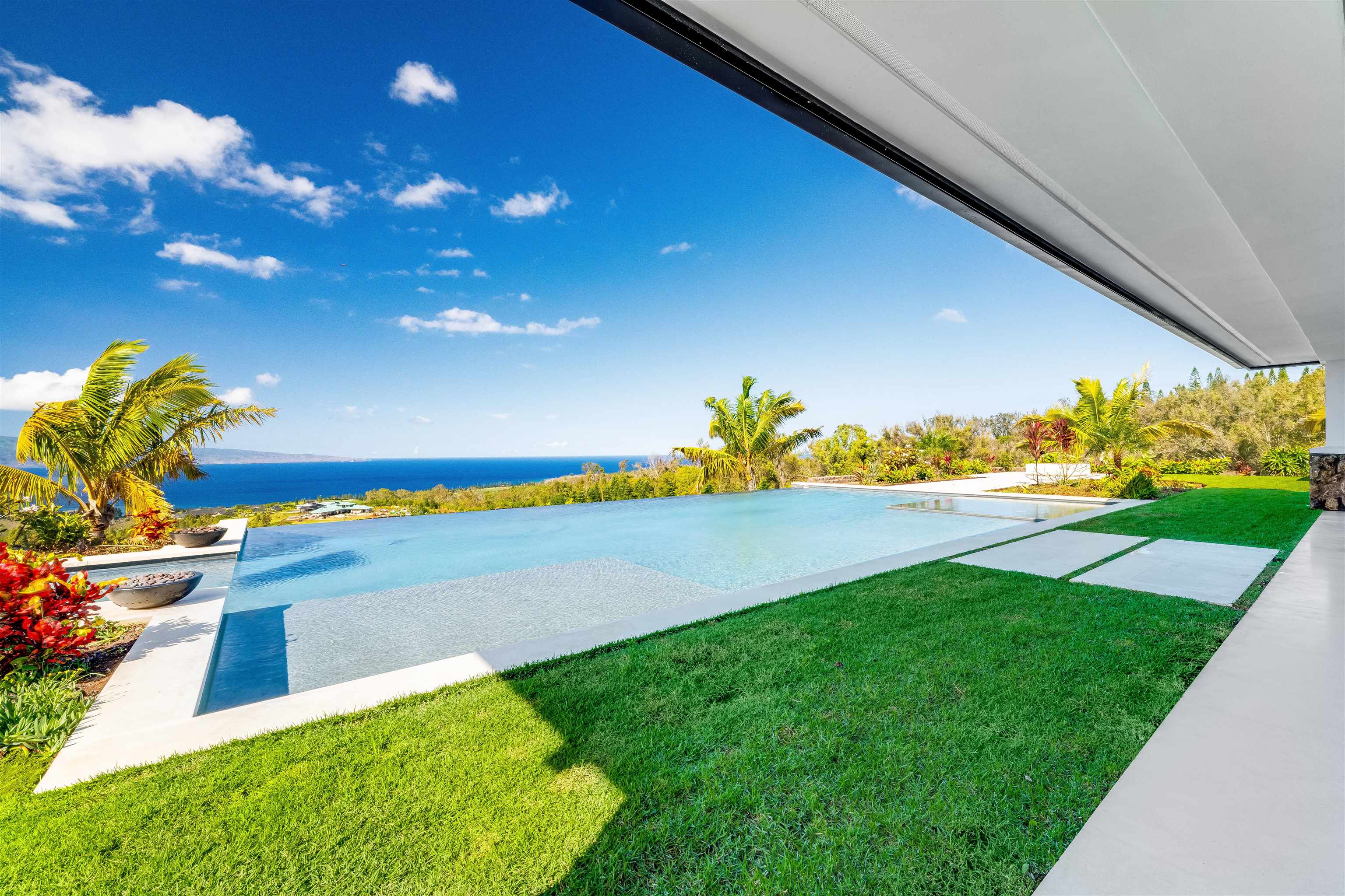 Located in the Kapalua Resort, Mahana Estates is a gated community sitting between the Ritz Carlton and the world-famous PGA Plantation Golf Course. Set across 1.4 acres with sweeping ocean and Molokai views, 710 Mahana Ridge is a bespoke luxury residence defined by exceptional craftsmanship and refined materials throughout. Designed by an award-winning Hawaiian firm whose work has been featured on HGTV, the home pairs architectural distinction with elevated amenities, offering a private, artfully composed living experience. Million-dollar views abound from the property, with the majestic Pacific, Dragon's Pointe, and the emerald green mountains of Moloka'i laid out before you. Kapalua embodies the Maui resort lifestyle. Residents benefit from an easement that allows them to cut through the Ritz Carlton to access Fleming Beach and the golf course. The Plantation Golf Course becomes the focus of the golf world each year when it hosts the annual kick-off to the PGA Tour, the Sentry Tournament of Champions. Residents can literally drive golf carts into town or down for a massage at the Montage Spa – considered the best spa on the island by many on Maui. You can also purchase a membership at the Kapalua Club and enjoy benefits that include access to the Spa Montage, Beach Club, advanced tee times at two championship golf courses and more! Set back behind a gated entrance, the 4,103 sq. ft. 5 bedroom and 6 bathroom home is designed for comfort and livability. Each bedroom has an en-suite bath, and three have outdoor showers. The two Primary Bedrooms feature spacious covered lanais, opulent indoor bathrooms, outdoor showers, luxurious soaking tubs with ocean views, and massive walk-in closets. All bathrooms have custom cabinets designed to complement the home's clean, contemporary aesthetic and feature luxury-grade Kohler plumbing fixtures. The home's elegant design ethos begins with the impressive, covered entry that leads to a massive Great Room, where Western Window Systems aluminum folding-pocket doors open onto a huge, covered lanai. Luxurious Hackwood flooring runs throughout the entire home. In the kitchen, luxury-stone countertops and custom Italian cabinetry by Cucine LUBE feature neutral tones, creating an elegant and functional space. Miele appliances allow for the ultimate food-prep experience, and a butler pantry is strategically positioned for easy access. Outside, steps lead into an incredible pool with spa tub and in-pool Baja Shelf seating, all of which is ideally positioned to take in the captivating views of Molokai. The pool features a cool swim-through channel flanked by fire bowls that leads to the swim-up bar attached to the adjacent covered BBQ pavilion. A fabulous firepit is located on the other side of the pool. The pool system is all top-quality Jandy pool equipment. The quality of the finishes is superb, with a mortarless Blue Rock Veneer Finish used on the pool retaining wall, a pocketing door system with insulated glazing, and custom hardwood garage doors. The entire home uses Lutron Light Switches for home automation, allowing lighting control via the user-friendly system app. The grounds are thoughtfully landscaped to reflect the home’s refined interior, offering an elevated tropical atmosphere with a distinctly Hawaiian feel. Other standout features of 710 Mahana Ridge include quad washers and dryers, and a large 3-car garage with a storage area. With 710 Mahana Ridge, you have an exquisite, brand-new luxury home on Maui without waiting years to build. Just slip into your turnkey Maui resort lifestyle!