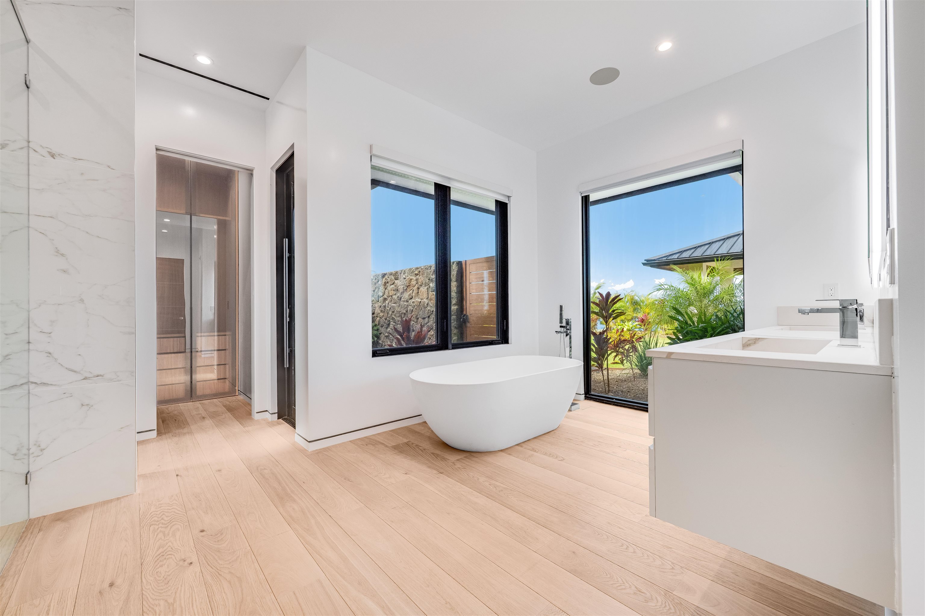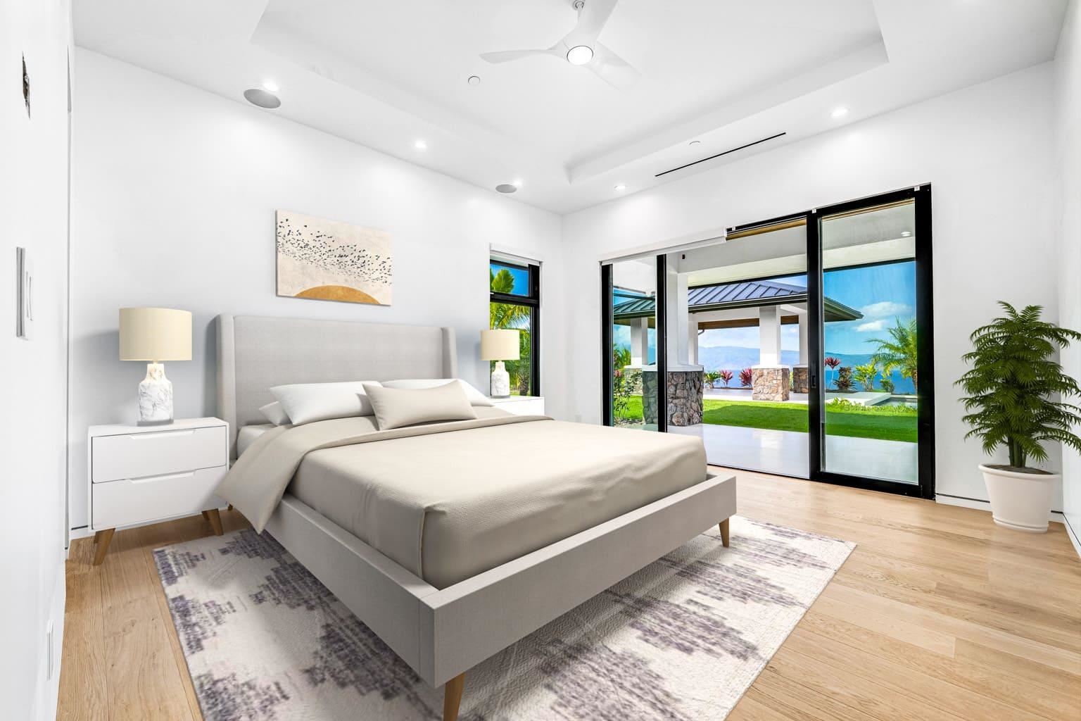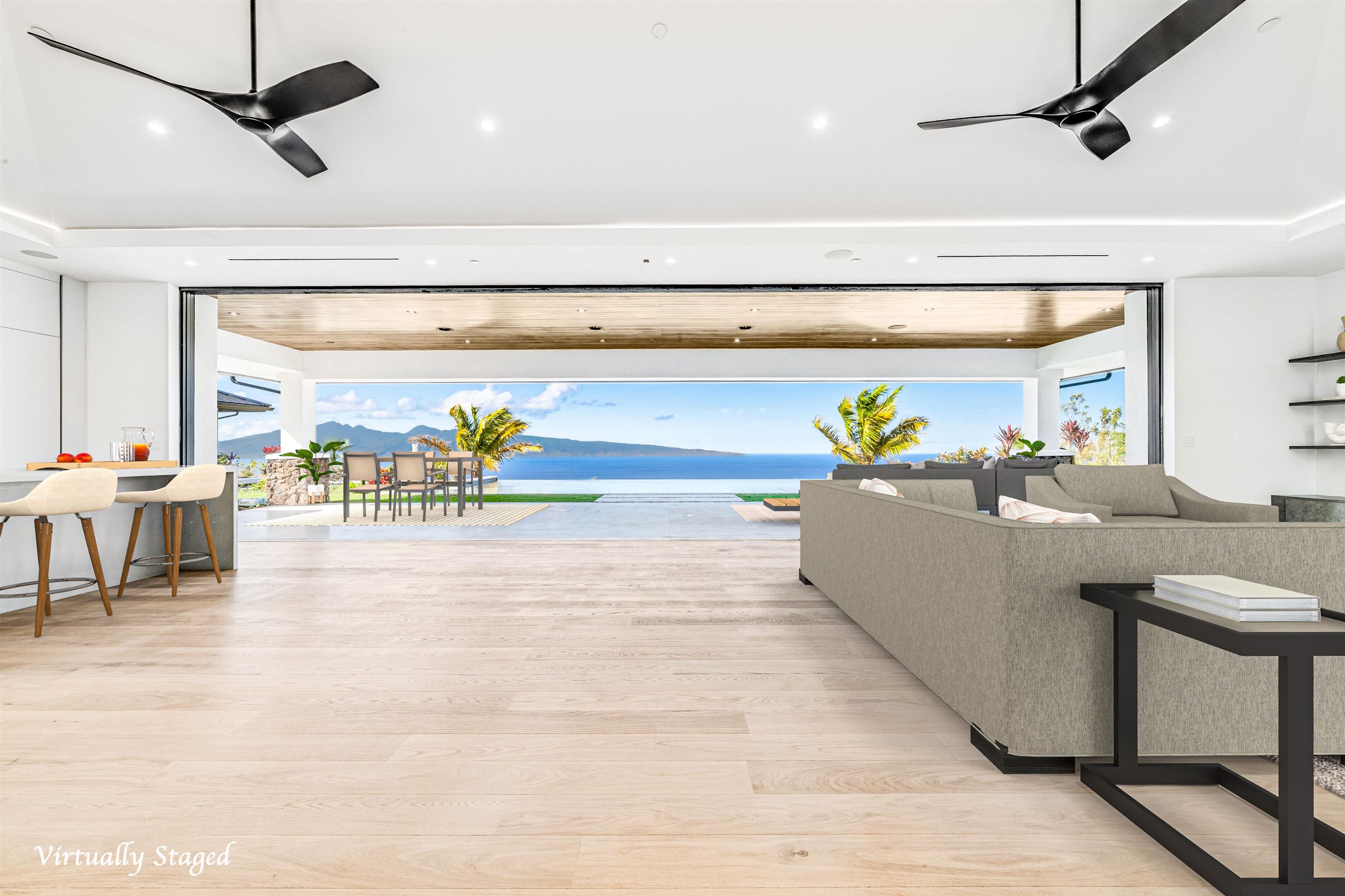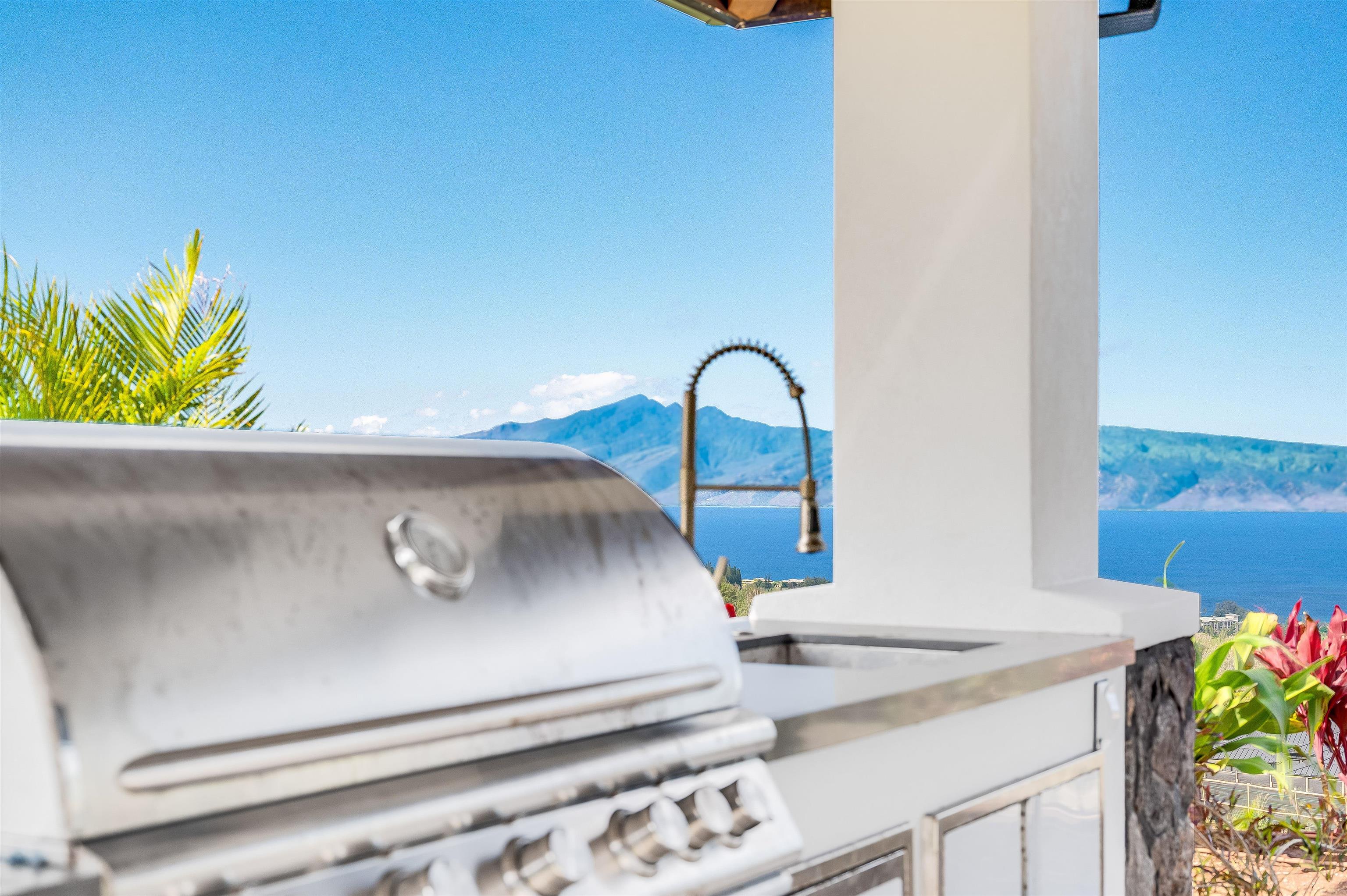 Located in the Kapalua Resort, Mahana Estates is a gated community sitting between the Ritz Carlton and the world-famous PGA Plantation Golf Course. Set across 1.4 acres with sweeping ocean and Molokai views, 710 Mahana Ridge is a bespoke luxury residence defined by exceptional craftsmanship and refined materials throughout. Designed by an award-winning Hawaiian firm whose work has been featured on HGTV, the home pairs architectural distinction with elevated amenities, offering a private, artfully composed living experience. Million-dollar views abound from the property, with the majestic Pacific, Dragon's Pointe, and the emerald green mountains of Moloka'i laid out before you. Kapalua embodies the Maui resort lifestyle. Residents benefit from an easement that allows them to cut through the Ritz Carlton to access Fleming Beach and the golf course. The Plantation Golf Course becomes the focus of the golf world each year when it hosts the annual kick-off to the PGA Tour, the Sentry Tournament of Champions. Residents can literally drive golf carts into town or down for a massage at the Montage Spa – considered the best spa on the island by many on Maui. You can also purchase a membership at the Kapalua Club and enjoy benefits that include access to the Spa Montage, Beach Club, advanced tee times at two championship golf courses and more! Set back behind a gated entrance, the 4,103 sq. ft. 5 bedroom and 6 bathroom home is designed for comfort and livability. Each bedroom has an en-suite bath, and three have outdoor showers. The two Primary Bedrooms feature spacious covered lanais, opulent indoor bathrooms, outdoor showers, luxurious soaking tubs with ocean views, and massive walk-in closets. All bathrooms have custom cabinets designed to complement the home's clean, contemporary aesthetic and feature luxury-grade Kohler plumbing fixtures. The home's elegant design ethos begins with the impressive, covered entry that leads to a massive Great Room, where Western Window Systems aluminum folding-pocket doors open onto a huge, covered lanai. Luxurious Hackwood flooring runs throughout the entire home. In the kitchen, luxury-stone countertops and custom Italian cabinetry by Cucine LUBE feature neutral tones, creating an elegant and functional space. Miele appliances allow for the ultimate food-prep experience, and a butler pantry is strategically positioned for easy access. Outside, steps lead into an incredible pool with spa tub and in-pool Baja Shelf seating, all of which is ideally positioned to take in the captivating views of Molokai. The pool features a cool swim-through channel flanked by fire bowls that leads to the swim-up bar attached to the adjacent covered BBQ pavilion. A fabulous firepit is located on the other side of the pool. The pool system is all top-quality Jandy pool equipment. The quality of the finishes is superb, with a mortarless Blue Rock Veneer Finish used on the pool retaining wall, a pocketing door system with insulated glazing, and custom hardwood garage doors. The entire home uses Lutron Light Switches for home automation, allowing lighting control via the user-friendly system app. The grounds are thoughtfully landscaped to reflect the home’s refined interior, offering an elevated tropical atmosphere with a distinctly Hawaiian feel. Other standout features of 710 Mahana Ridge include quad washers and dryers, and a large 3-car garage with a storage area. With 710 Mahana Ridge, you have an exquisite, brand-new luxury home on Maui without waiting years to build. Just slip into your turnkey Maui resort lifestyle!
