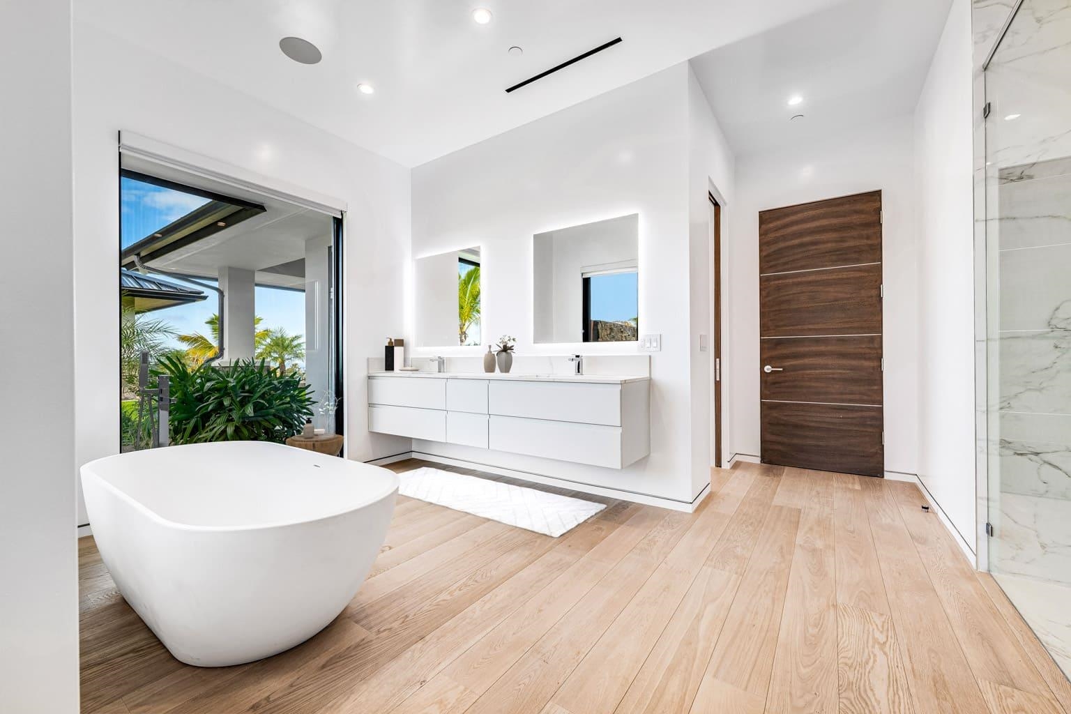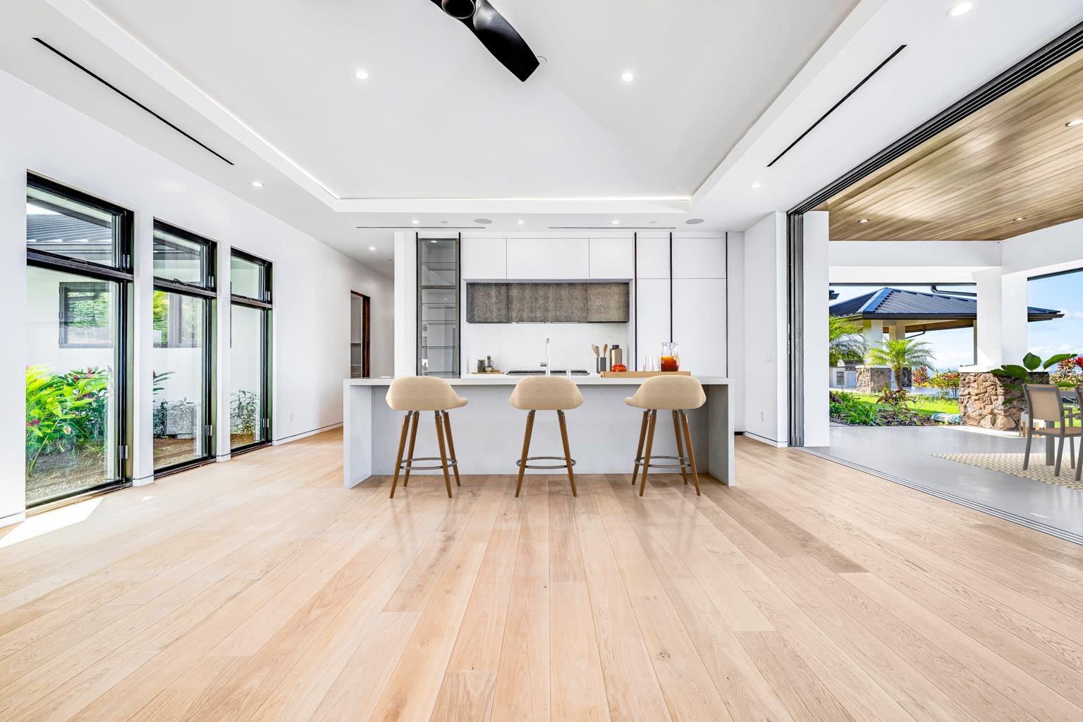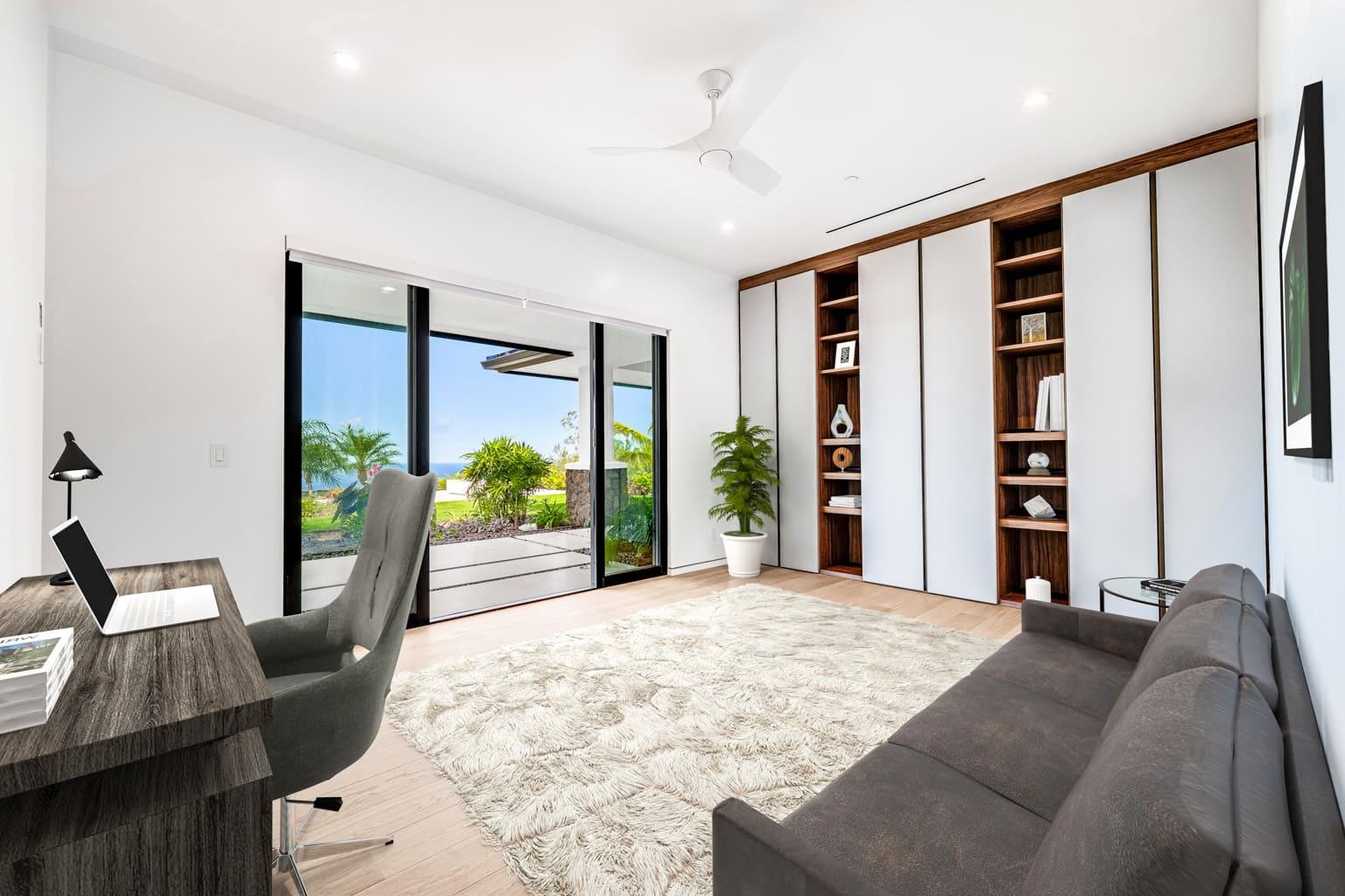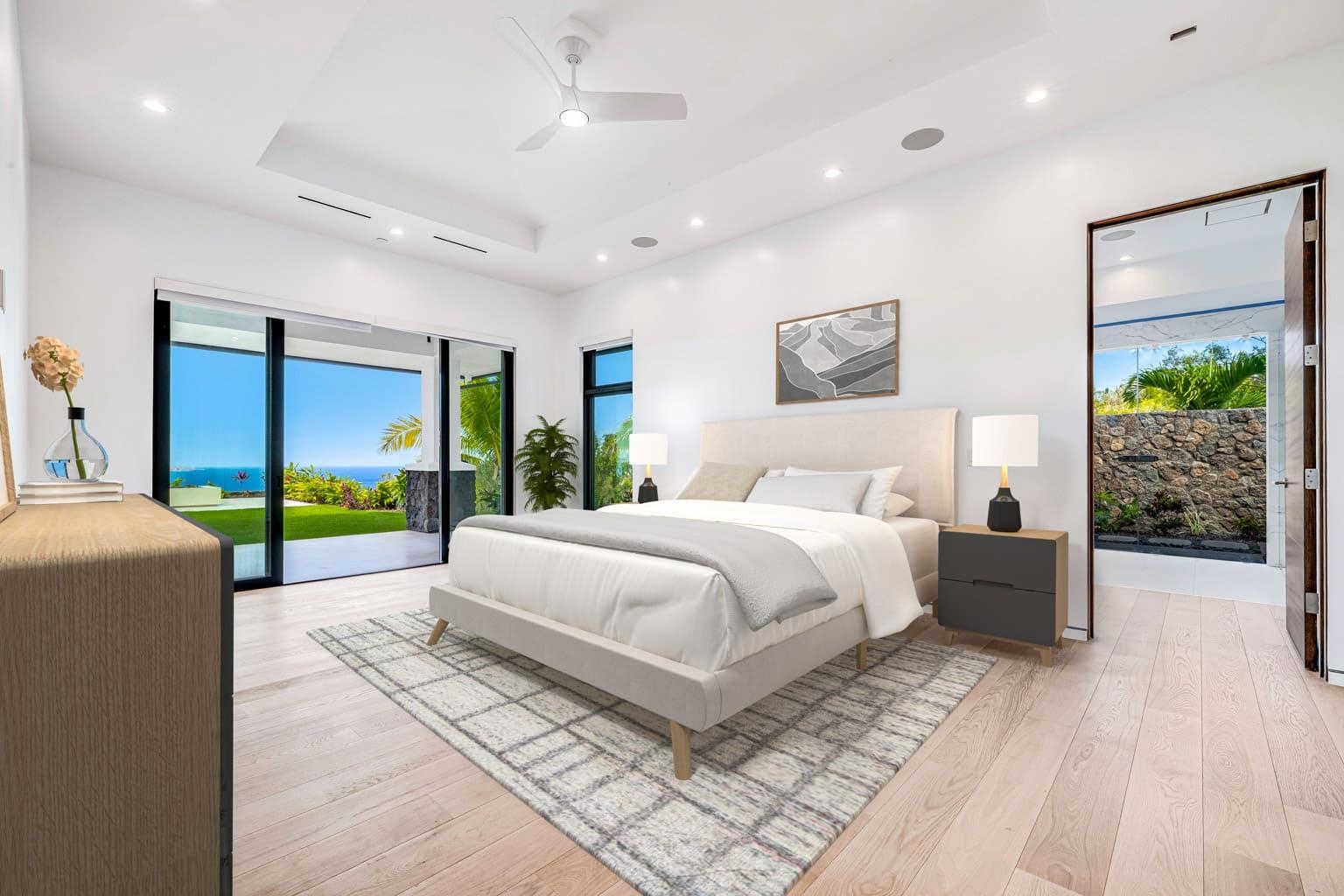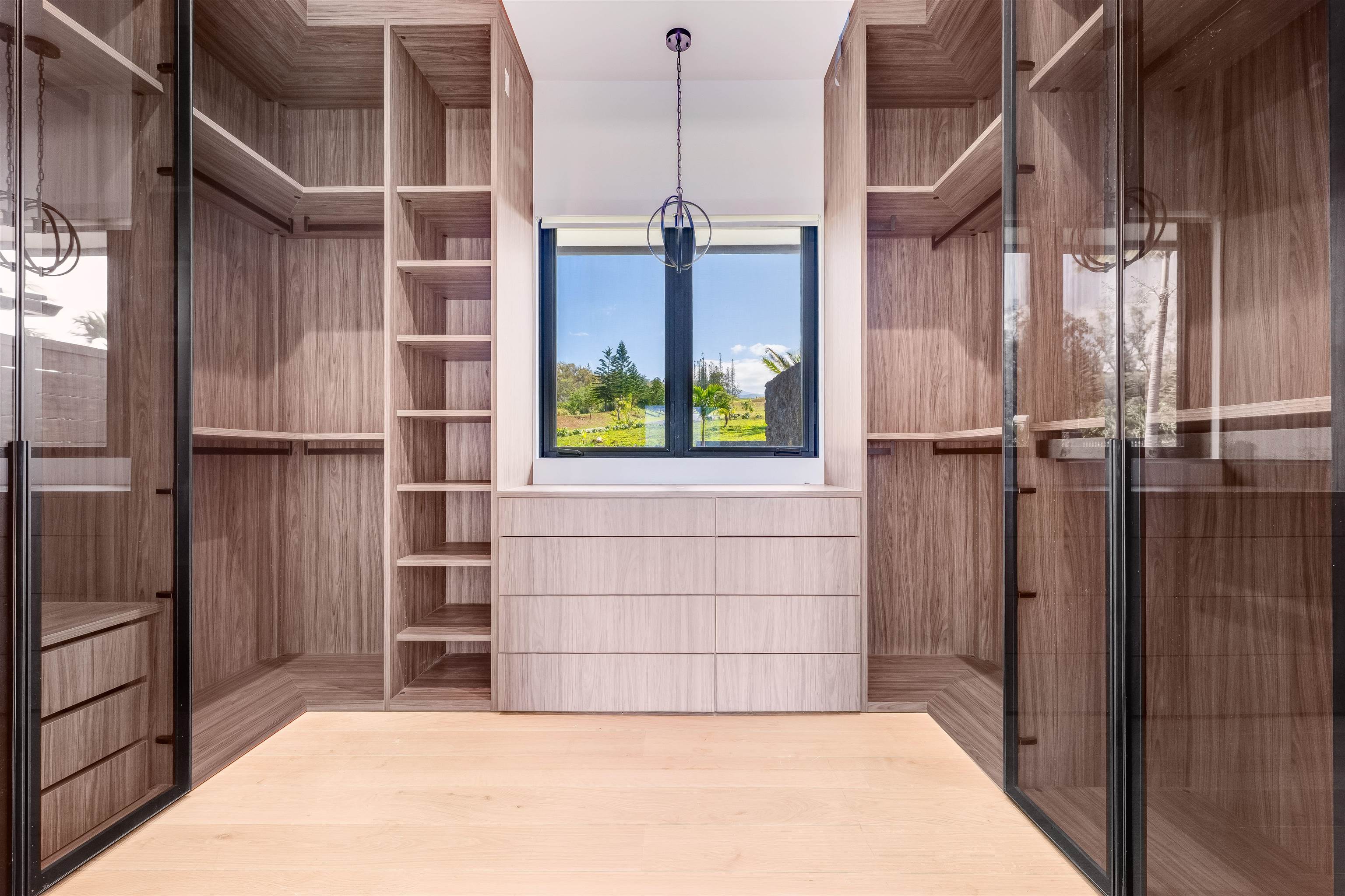 Located in the Kapalua Resort, Mahana Estates is a gated community sitting between the Ritz Carlton and the world-famous PGA Plantation Golf Course. Set across 1.4 acres with sweeping ocean and Molokai views, 710 Mahana Ridge is a bespoke luxury residence defined by exceptional craftsmanship and refined materials throughout. Designed by an award-winning Hawaiian firm whose work has been featured on HGTV, the home pairs architectural distinction with elevated amenities, offering a private, artfully composed living experience. Million-dollar views abound from the property, with the majestic Pacific, Dragon's Pointe, and the emerald green mountains of Moloka'i laid out before you. Kapalua embodies the Maui resort lifestyle. Residents benefit from an easement that allows them to cut through the Ritz Carlton to access Fleming Beach and the golf course. The Plantation Golf Course becomes the focus of the golf world each year when it hosts the annual kick-off to the PGA Tour, the Sentry Tournament of Champions. Residents can literally drive golf carts into town or down for a massage at the Montage Spa – considered the best spa on the island by many on Maui. You can also purchase a membership at the Kapalua Club and enjoy benefits that include access to the Spa Montage, Beach Club, advanced tee times at two championship golf courses and more! Set back behind a gated entrance, the 4,103 sq. ft. 5 bedroom and 6 bathroom home is designed for comfort and livability. Each bedroom has an en-suite bath, and three have outdoor showers. The two Primary Bedrooms feature spacious covered lanais, opulent indoor bathrooms, outdoor showers, luxurious soaking tubs with ocean views, and massive walk-in closets. All bathrooms have custom cabinets designed to complement the home's clean, contemporary aesthetic and feature luxury-grade Kohler plumbing fixtures. The home's elegant design ethos begins with the impressive, covered entry that leads to a massive Great Room, where Western Window Systems aluminum folding-pocket doors open onto a huge, covered lanai. Luxurious Hackwood flooring runs throughout the entire home. In the kitchen, luxury-stone countertops and custom Italian cabinetry by Cucine LUBE feature neutral tones, creating an elegant and functional space. Miele appliances allow for the ultimate food-prep experience, and a butler pantry is strategically positioned for easy access. Outside, steps lead into an incredible pool with spa tub and in-pool Baja Shelf seating, all of which is ideally positioned to take in the captivating views of Molokai. The pool features a cool swim-through channel flanked by fire bowls that leads to the swim-up bar attached to the adjacent covered BBQ pavilion. A fabulous firepit is located on the other side of the pool. The pool system is all top-quality Jandy pool equipment. The quality of the finishes is superb, with a mortarless Blue Rock Veneer Finish used on the pool retaining wall, a pocketing door system with insulated glazing, and custom hardwood garage doors. The entire home uses Lutron Light Switches for home automation, allowing lighting control via the user-friendly system app. The grounds are thoughtfully landscaped to reflect the home’s refined interior, offering an elevated tropical atmosphere with a distinctly Hawaiian feel. Other standout features of 710 Mahana Ridge include quad washers and dryers, and a large 3-car garage with a storage area. With 710 Mahana Ridge, you have an exquisite, brand-new luxury home on Maui without waiting years to build. Just slip into your turnkey Maui resort lifestyle!
