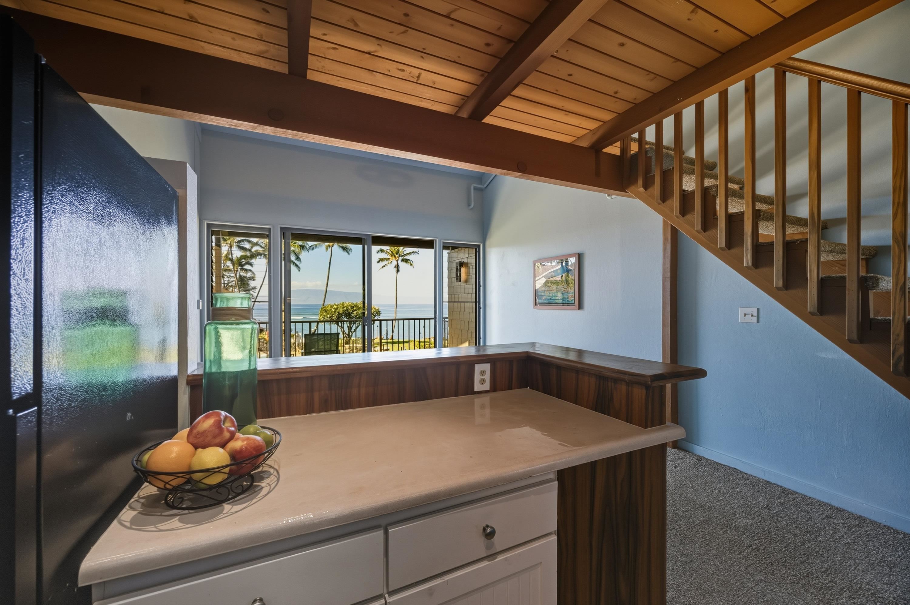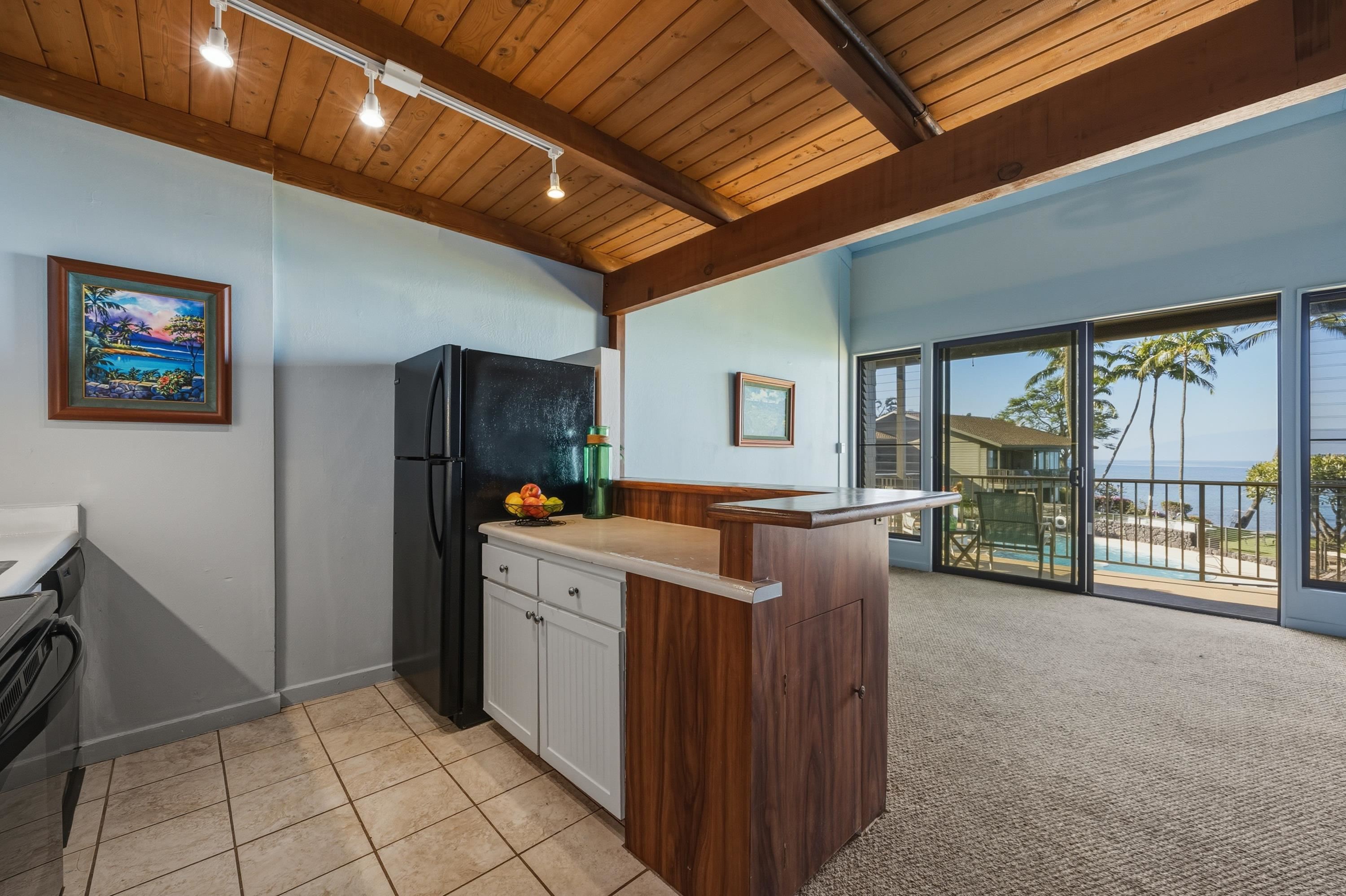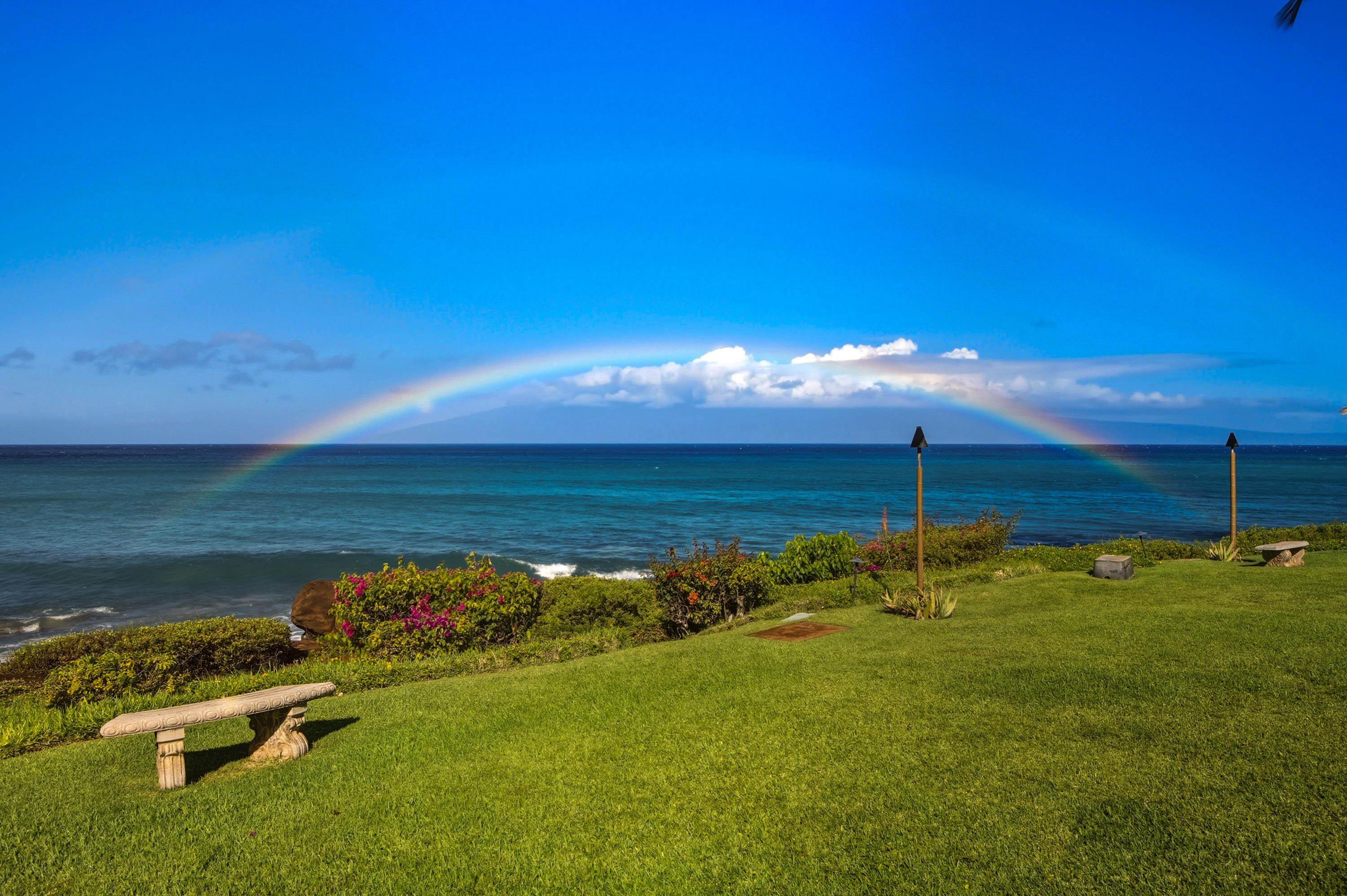 Watch whales breach from the comfort of this very private 2-bedroom, 2-bath oceanfront condo at Polynesian Shores 206. Residents and guests are treated to breathtaking panoramic views of the Pacific, vibrant sunsets, and frequent sightings of whales, dolphins, and green sea turtles just offshore, along with sweeping vistas of the islands of Moloka'i and Lana'i. Fall asleep to the soothing rhythm of the waves and wake to the endless blue horizon. Relax in the living room or step out onto the lanai to listen to the surf and watch the sky come alive with brilliant sunset colors. Each evening at dusk, the property glows with charming tiki lights, creating a warm, magical atmosphere. With only 52 residences set on 2.055 beautifully maintained oceanfront acres, Polynesian Shores offers a rare sense of intimacy and community. The lush grounds feature a heated swimming pool, a jacuzzi spa, and newly installed BBQ grills—perfect for gathering and unwinding after a day in paradise. Recent capital improvements include new building exterior siding, sliding lanai doors, lanai railings, roof, plumbing, windows, and front doors with a secure screen-entry lock system. All staging, art and lanai furniture will not be included in the sale.