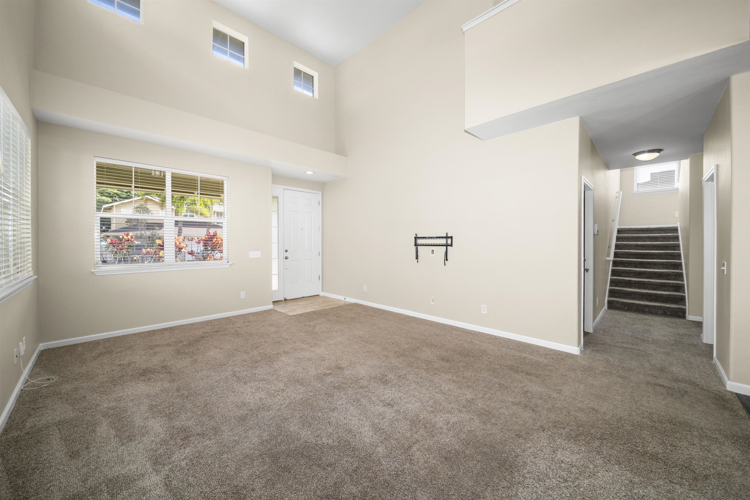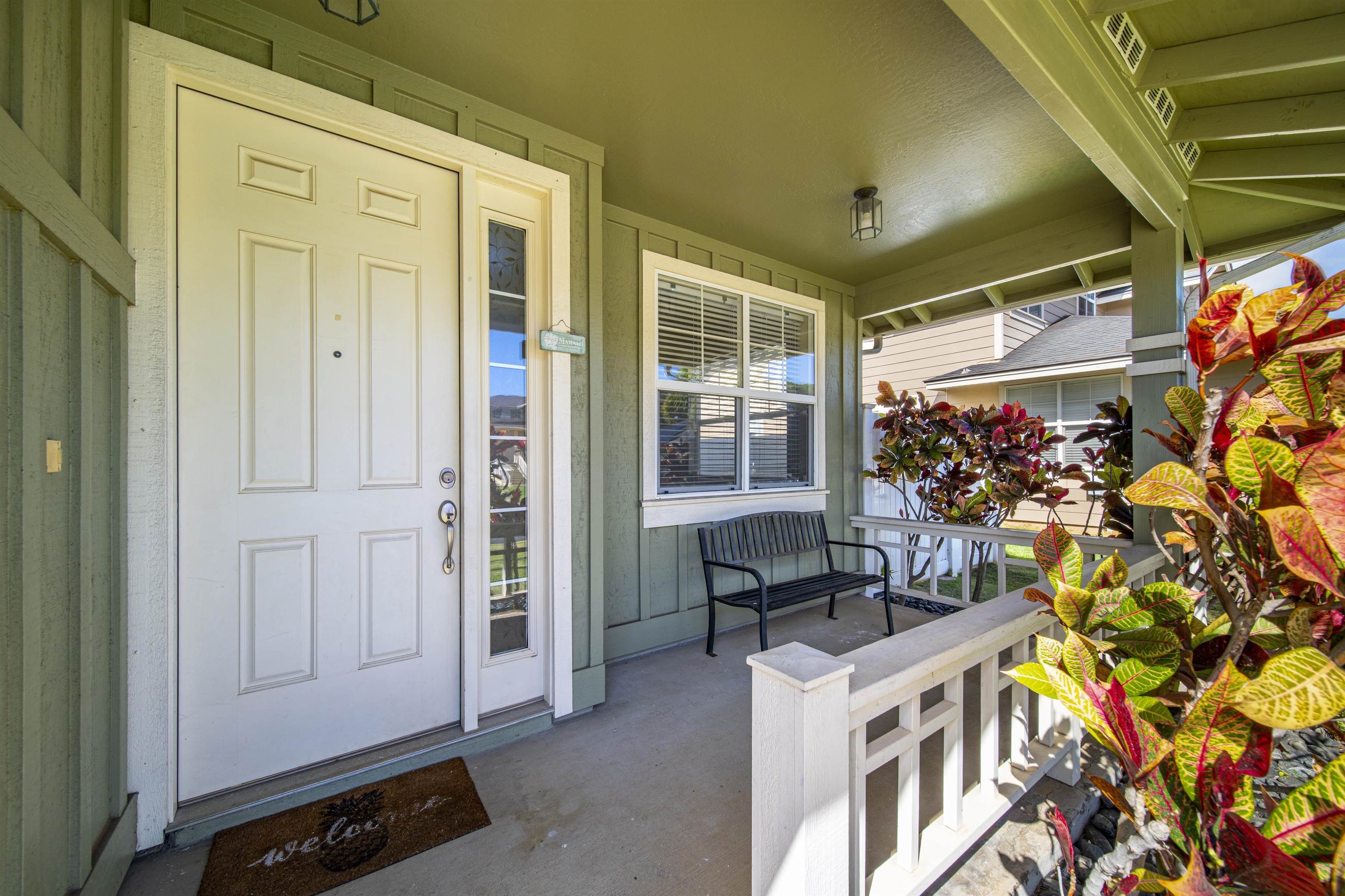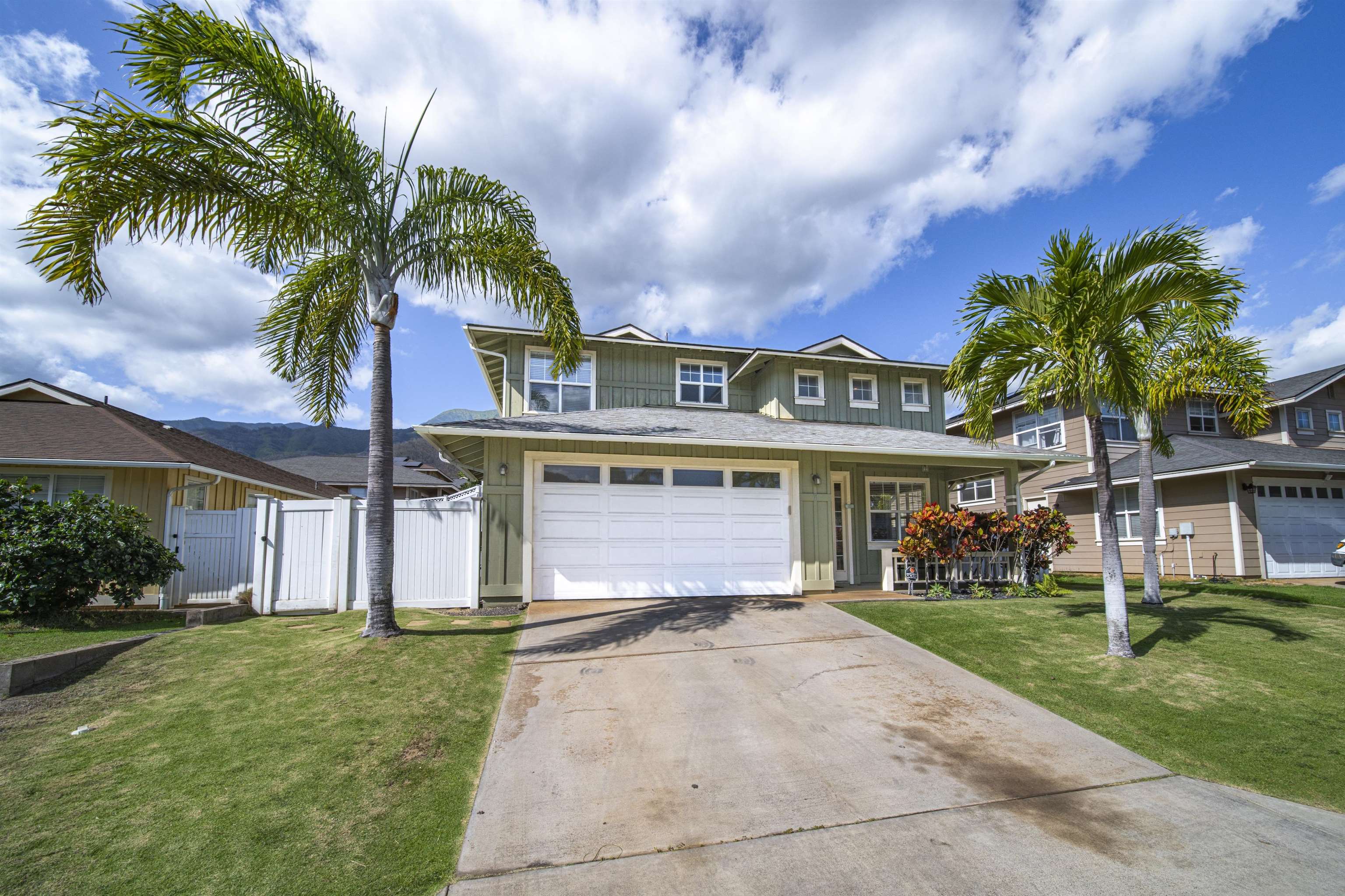 Welcome home to 71 Kumulaau Ohia Loop, located in the Ohia subdivision of the highly desirable Kehalani master-planned community in Wailuku. This 4-bedroom, 2.5-bath residence offers 1,860 square feet of well-designed living space, with the primary bedroom conveniently located on the first level for comfort and privacy. The home features new vinyl flooring in the kitchen and dining area, complementing an open and functional layout. The living room is a standout, offering very high ceilings and abundant natural light, creating a bright and airy atmosphere throughout the main living space. Enjoy year-round comfort with central air conditioning. Step outside to a private, fully enclosed backyard with a spacious patio, perfect for outdoor dining, entertaining, or relaxing while taking in beautiful West Maui Mountain views. Set in a quiet, well-maintained neighborhood, this home is just minutes from parks, schools, shopping, medical facilities, and all of Central Maui’s everyday conveniences. A wonderful opportunity to own in one of Wailuku’s most sought-after communities—Kehalani living at its best. The staging items such as furniture, artwork, plants, and the like portrayed in these photos have been created by computer-generated image technology and used for illustration purposes only. No real, actual or physical staging items are included in this sale. Property is vacant and very easy to show.