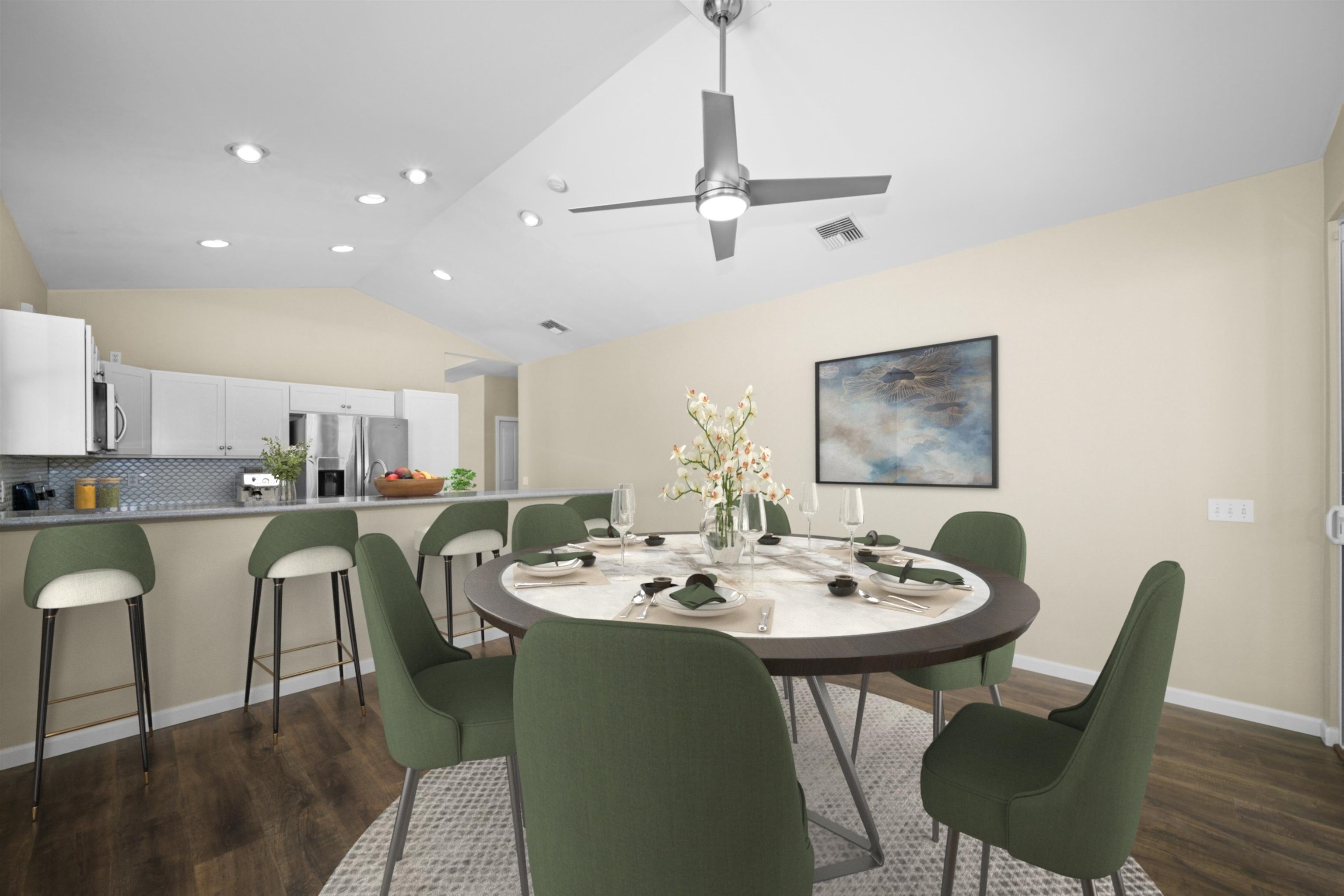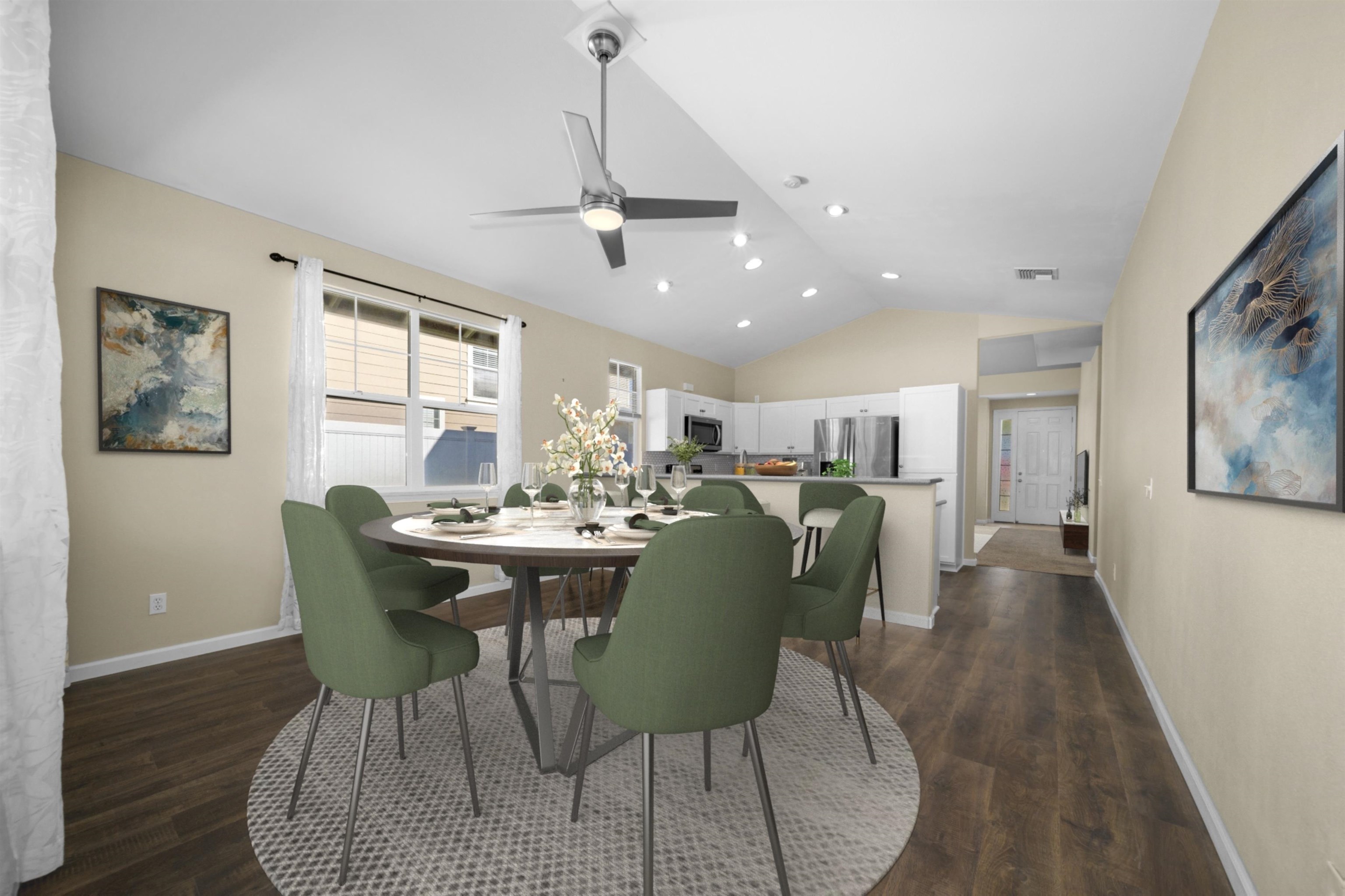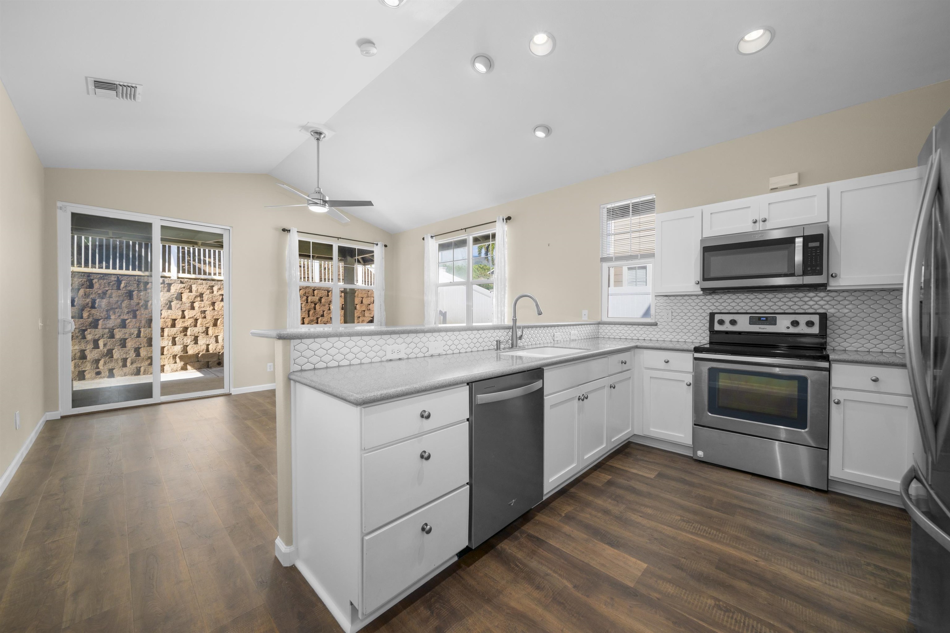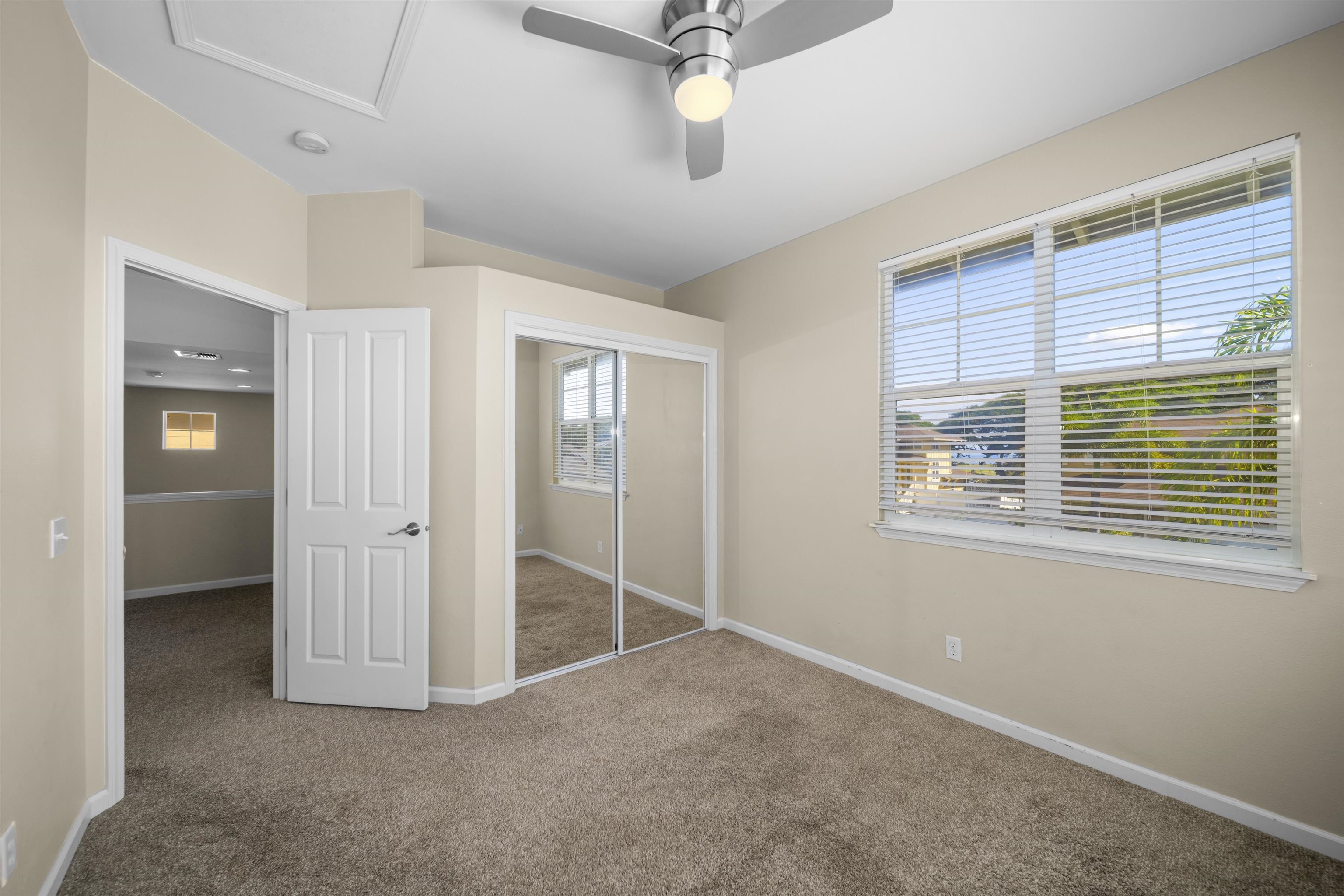 Welcome home to 71 Kumulaau Ohia Loop, located in the Ohia subdivision of the highly desirable Kehalani master-planned community in Wailuku. This 4-bedroom, 2.5-bath residence offers 1,860 square feet of well-designed living space, with the primary bedroom conveniently located on the first level for comfort and privacy. The home features new vinyl flooring in the kitchen and dining area, complementing an open and functional layout. The living room is a standout, offering very high ceilings and abundant natural light, creating a bright and airy atmosphere throughout the main living space. Enjoy year-round comfort with central air conditioning. Step outside to a private, fully enclosed backyard with a spacious patio, perfect for outdoor dining, entertaining, or relaxing while taking in beautiful West Maui Mountain views. Set in a quiet, well-maintained neighborhood, this home is just minutes from parks, schools, shopping, medical facilities, and all of Central Maui’s everyday conveniences. A wonderful opportunity to own in one of Wailuku’s most sought-after communities—Kehalani living at its best. The staging items such as furniture, artwork, plants, and the like portrayed in these photos have been created by computer-generated image technology and used for illustration purposes only. No real, actual or physical staging items are included in this sale. Property is vacant and very easy to show.