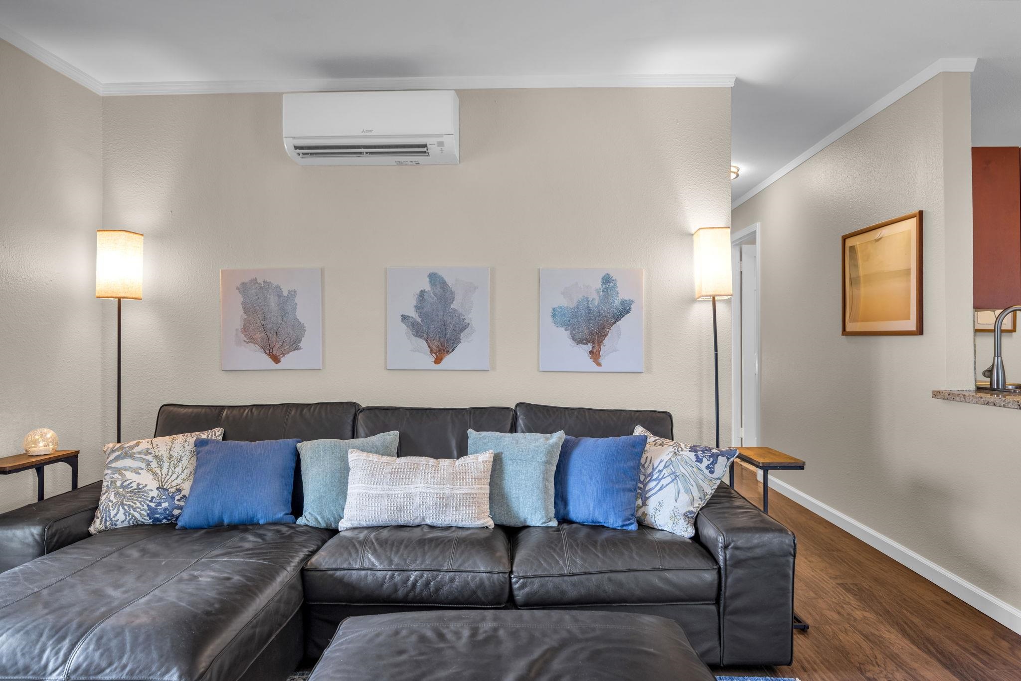 This move-in-ready, top-floor condo at Kihei Villages is the one you’ve been waiting for. Thoughtfully remodeled and offered turnkey furnished, this home features fresh interior paint, updated laminate flooring with soundproofing, and a welcoming, modern feel throughout. The kitchen is finished with wood cabinetry, granite countertops, and newer appliances, including a brand-new dishwasher and microwave, with a refrigerator just two years old. Both bathrooms have been tastefully updated, and the tiled tub adds a clean, polished touch. Comfort comes easy with split A/C in every room, double-paned windows and sliders for a cooler, quieter interior, and a newer front-loading washer and dryer conveniently located in the unit. Step out onto your lanai to enjoy the gentle tropical breeze and relaxed island atmosphere. Added conveniences include a digital front-door keypad. 2 parking stalls and close proximity to the beach, community clubhouse, and on-site car wash. Whether you’re looking for a primary residence, second home, or investment opportunity, this condo offers easy, low-maintenance Maui living in a location buyers love.