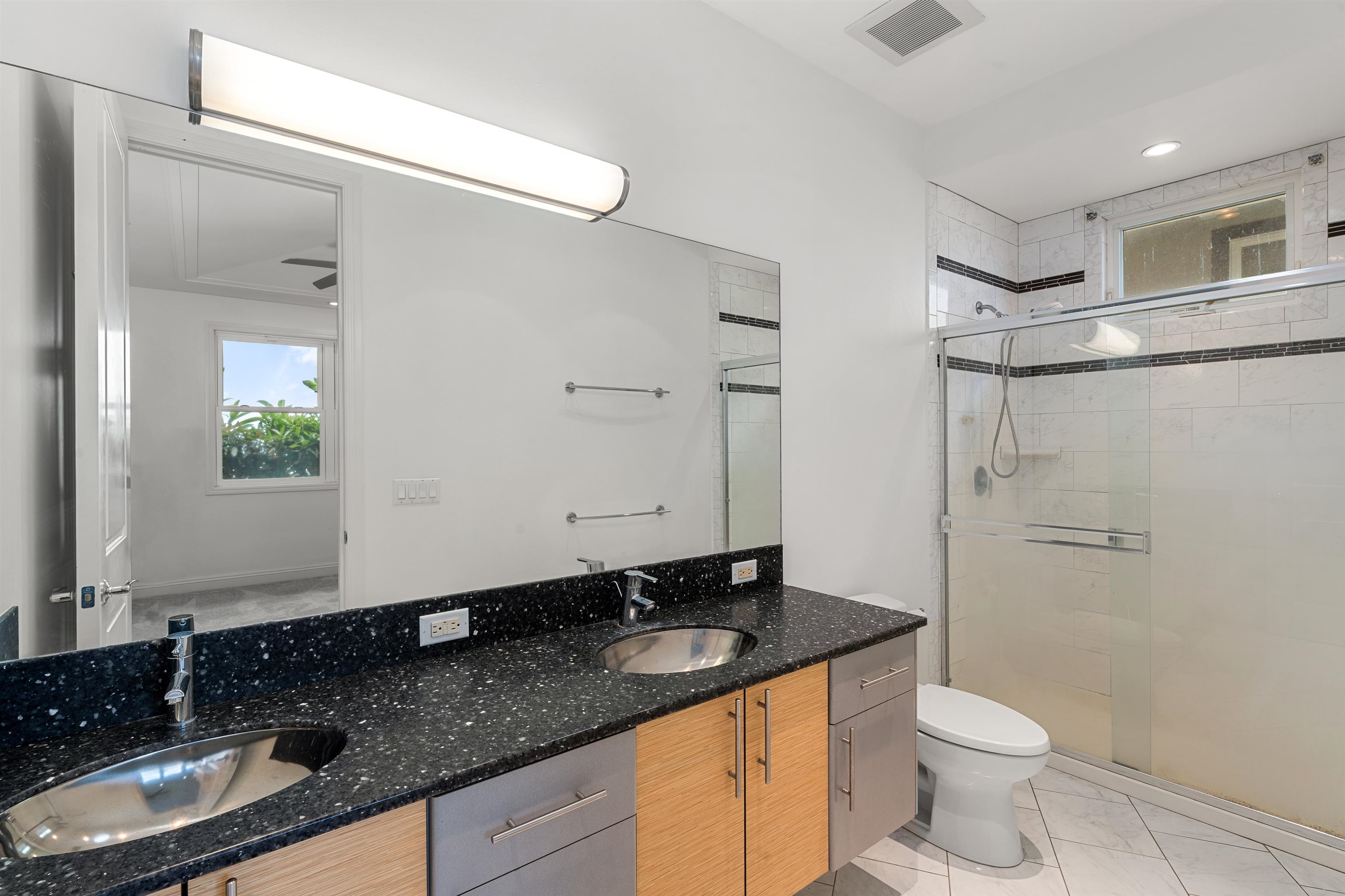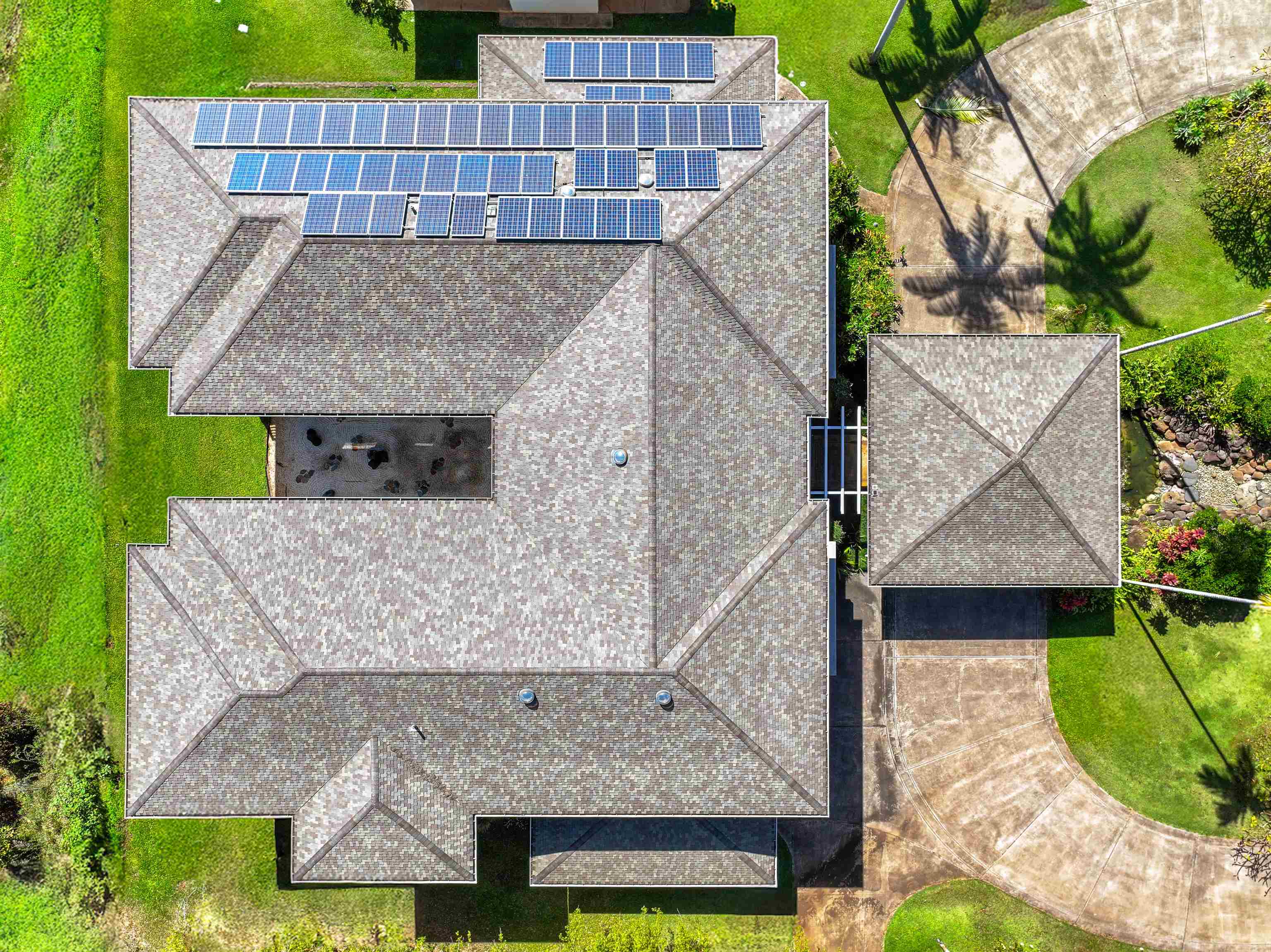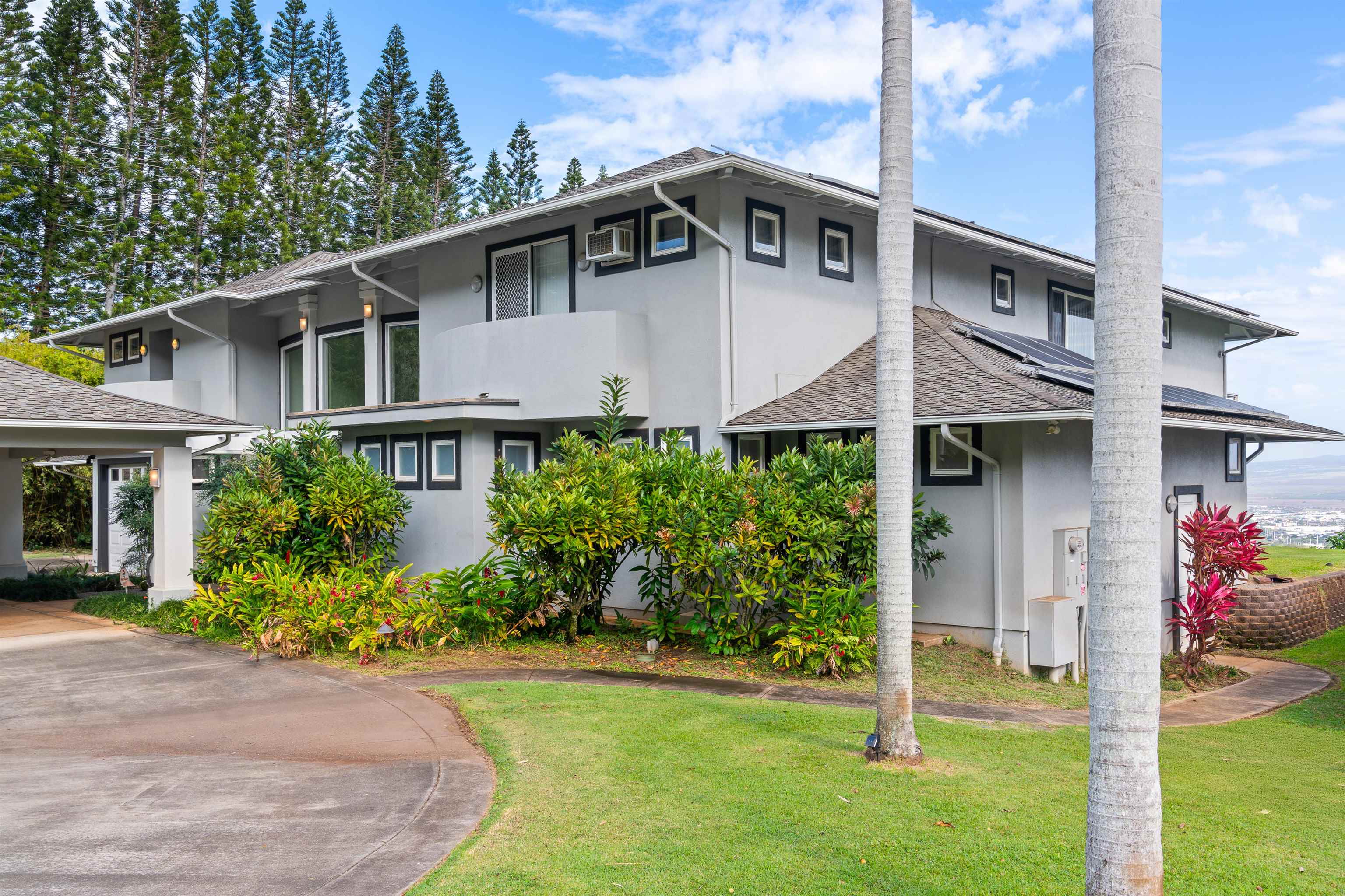 Come and see this spacious estate home located in the peaceful countryside of Wailuku Country Estates. Just 10 minutes from town, the setting feels quiet and rural while still being conveniently close to everyday amenities. The 2 acre property offers a wonderful sense of openness, with plenty of room to enjoy the outdoors, including putting greens for practicing your golf game. The right side of the home is designed for recreation and fitness, featuring a half court basketball area that leads into an above ground pool room with a jetted swim pool for exercising against the current. A welcoming porte cochere leads into a large entry area with dual staircases that open to an upstairs office and landing. From here, enjoy expansive views of the mountains and ocean, an ideal spot for working from home. Upstairs on the right side are three bedrooms, each with its own bathroom, along with a generous laundry area. The left side of the upper level is dedicated to the main suite, which includes a spacious bedroom, a large dressing room with built-in storage, and a well appointed bathroom. A private staircase connects the main suite to the kitchen, dining, and family gathering areas below. The kitchen sits at the center of the home, designed so the cook remains part of the conversation and activity. Additional features include a three-bay garage with space for vehicles and hobbies, an electric vehicle charging station, and solar panels that help keep energy costs down. A separate single-story cottage offers approximately 1,000 square feet with two bedrooms and two baths, perfect for hosting guests or accommodating extended family. Bright and airy, it features a comfortable living room, a separate dining space, a garage, and a covered lanai where you can enjoy the island breeze. This property is designed for comfortable everyday living. Schedule a private showing with your agent today and come see it for yourself.