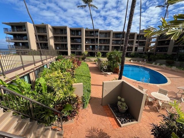 DIRECT OCEAN FRONT. Exceptional value for this big Ocean view condo with year round sunsets and seasonal whale watching from your living room and lanai. Ocean views throughout the unit with the sounds of the surf. Tastefully decorated and fully furnished. Cool trade winds. The floor plan includes a expanded kitchen and remodeled bathroom. Located 3 units back from the ocean. Lanai has large storage for all the water toys and owners closet. Centrally located pool area and large elevated sundeck, shuffleboard, BBQ area, shade pavilions and grass area. Direct access to the ocean. Kayak and surf board storage area located on the ground floor below the unit. Maintenance fee includes all utilities including electricity, cable TV, internet, common area maintenance, insurance and on-site property manager.