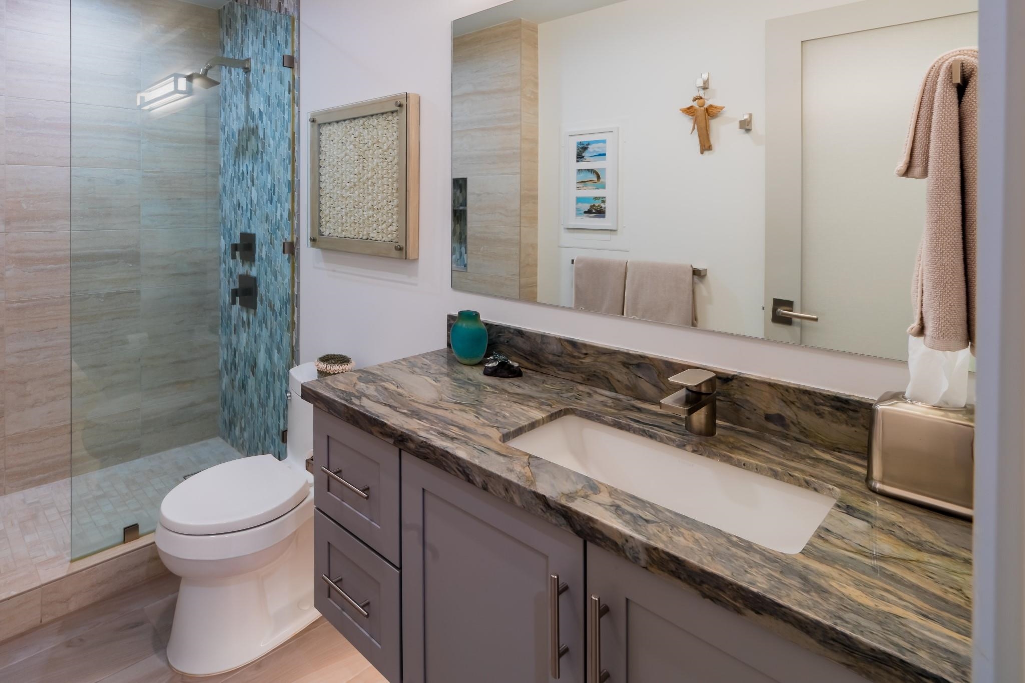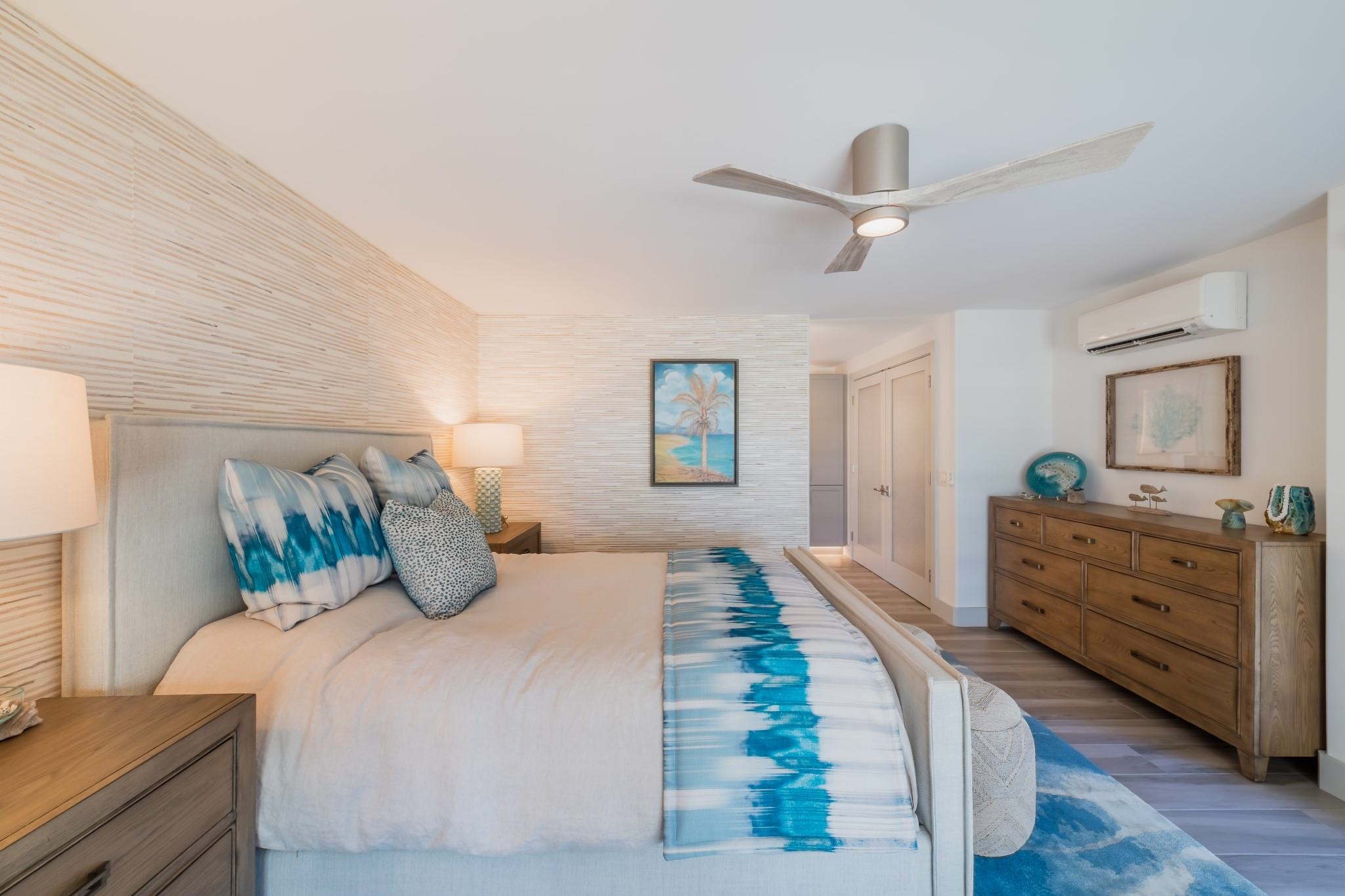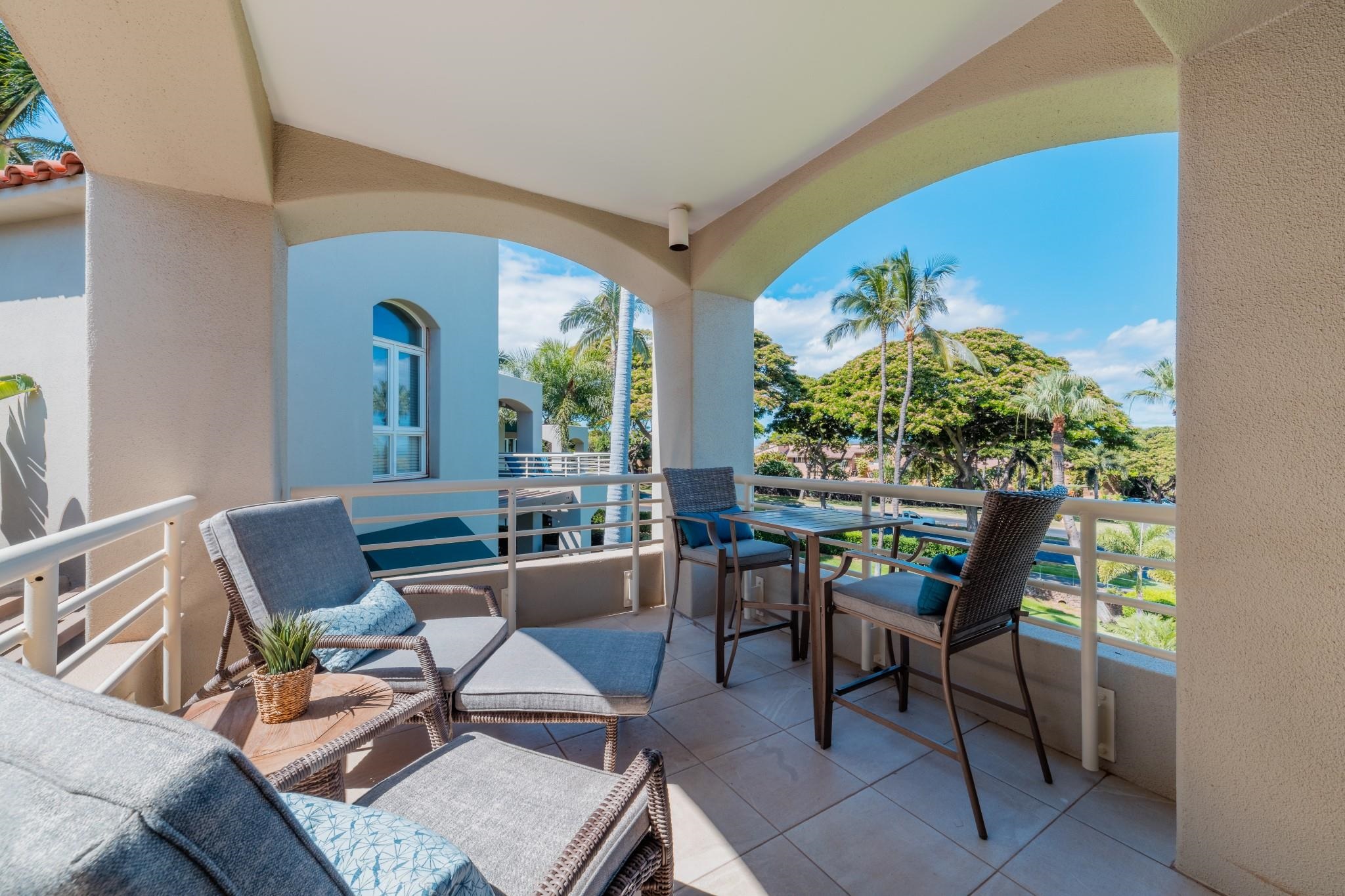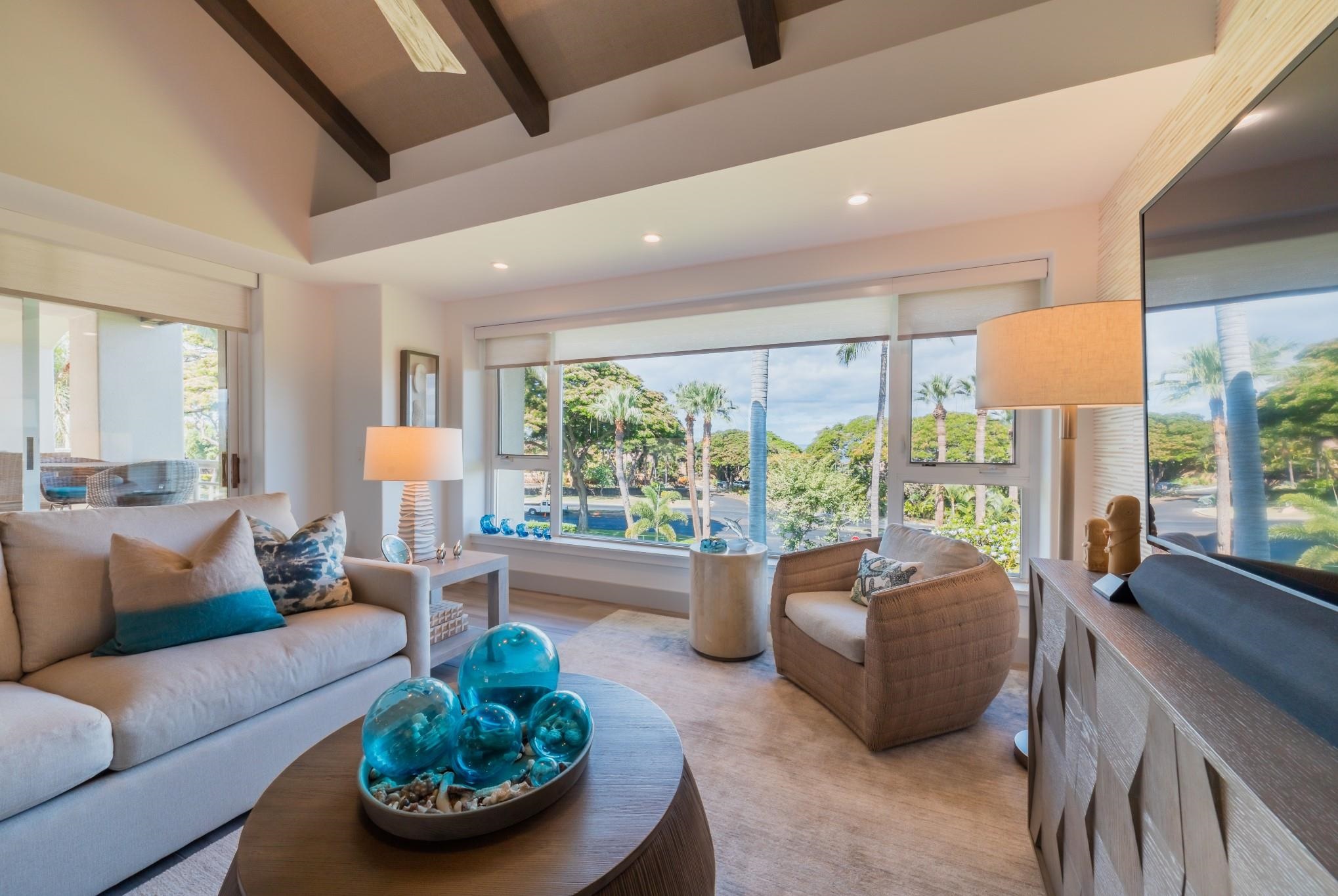 Discover exceptional value in this beautifully remodeled two-bedroom, two-bath villa at Palms at Wailea 1606, ideally located in one of South Maui’s most sought-after coastal communities. Offering 1,299 square feet of light-filled living space, this inviting property features vaulted ceilings and a spacious lanai that embraces Maui’s indoor-outdoor lifestyle. Expansive ocean views and Wailea’s lush tropical surroundings create a peaceful setting for both everyday living and entertaining. Thoughtfully redesigned by ADX Construction and Swan Interiors, the interiors showcase high-quality finishes throughout, including Level 5 polished walls, linen grass cloth accents, custom resin panels, premium quartzite countertops with a waterfall-edge kitchen island, KitchenAid appliances, Merillat Masterpiece cabinetry, designer tilework, and elegant porcelain plank flooring. Every detail reflects a refined balance of comfort and modern island style. The large lanai is perfect for relaxing or hosting while enjoying the ocean views. Located just moments from South Maui’s renowned beaches and the heart of Wailea, you’ll have easy access to fine dining, boutique shopping, and world-class golf. Residences enjoy resort-style amenities, including an ocean-view pool, hot tub, BBQ areas, and beautifully maintained grounds with spaces to gather and unwind—including a scenic vantage point for seasonal whale watching. An exceptional opportunity to own a design-forward villa in Wailea—ideal as a full-time residence, island retreat, or investment property.
