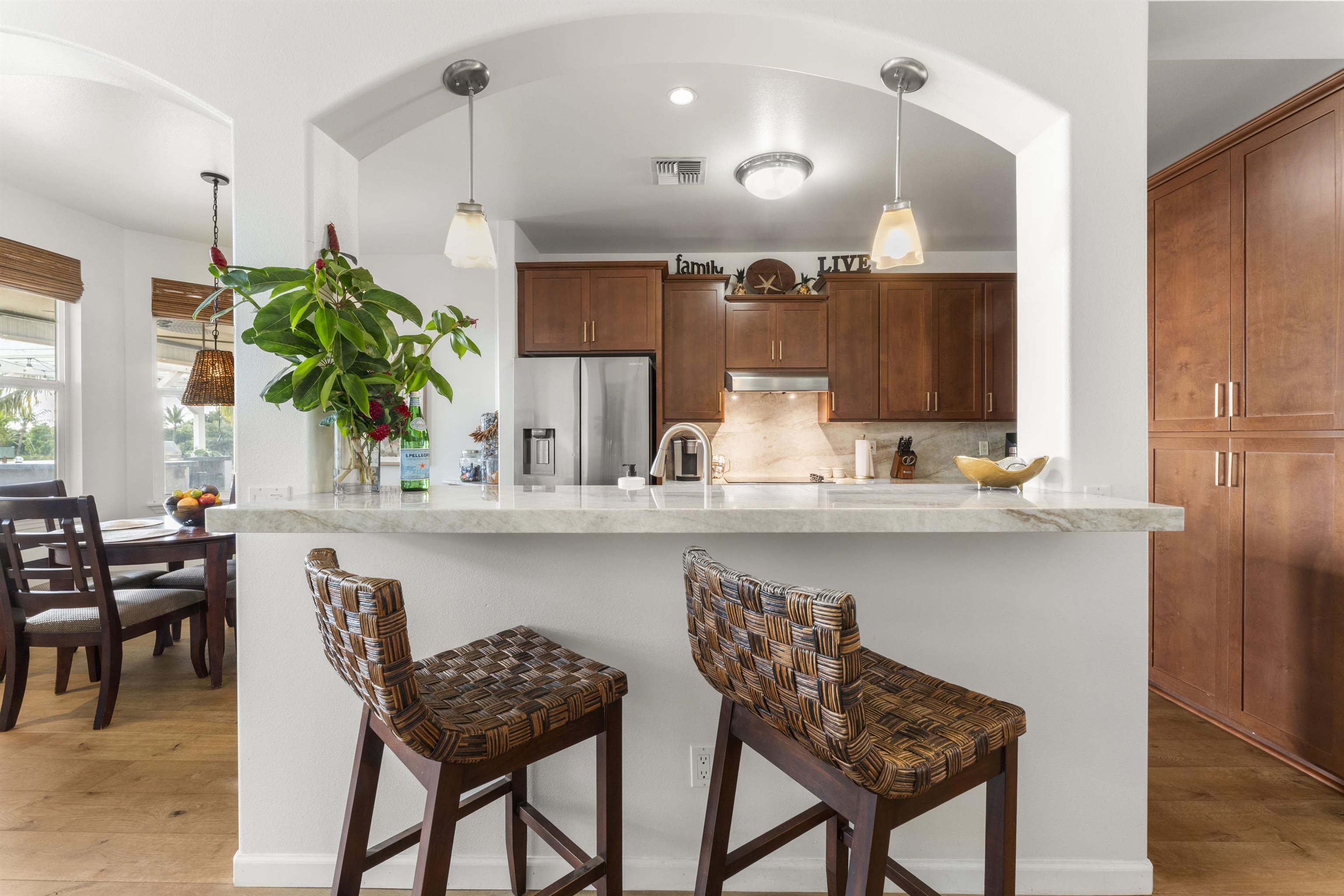 FIRST TIME available. LARGEST single-level floor plan in Moana Estates! Prime park-front location with OCEAN views and spectacular sunsets. Located in South Kihei, walking distance to Kamalii Elementary School and less than a mile to South Maui's beautiful beaches. Just minutes from the world-renowned Wailea resort area offering luxury shopping, dining, and golf. This 4-bedroom, 3.5-bath home features vaulted ceilings, an open-concept layout, and abundant natural light. Recent upgrades include quartz kitchen countertops, new life-proof flooring, and a new A/C condenser. Outdoor living shines with a private pool, hot tub, and fully fenced backyard-perfect for entertaining and enjoying Maui's year-round sunshine. Energy-efficient with 46 owned solar panels, helping reduce utility costs. An exceptional opportunity to own one of Moana Estates' most desirable floor plans in an unbeatable location.