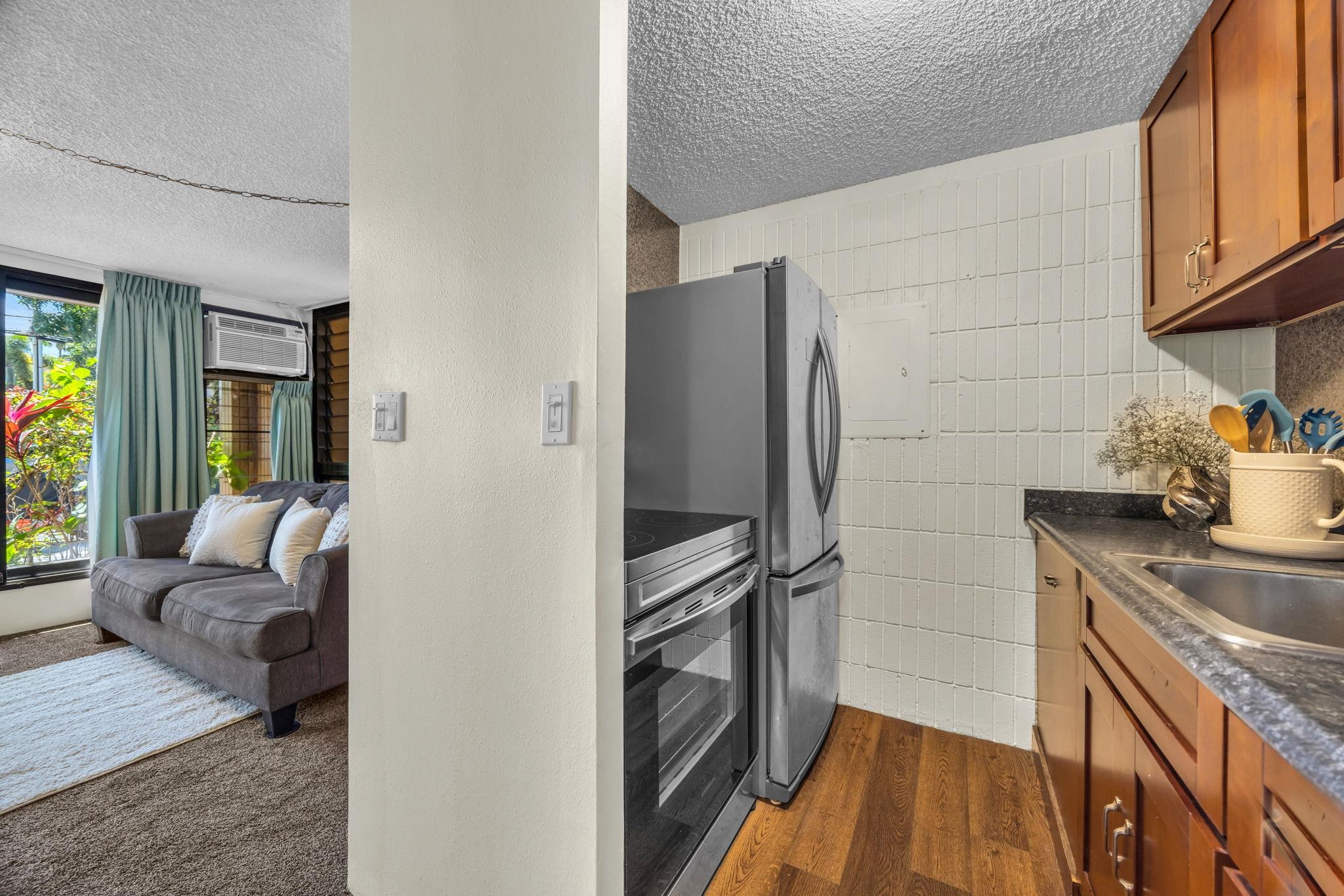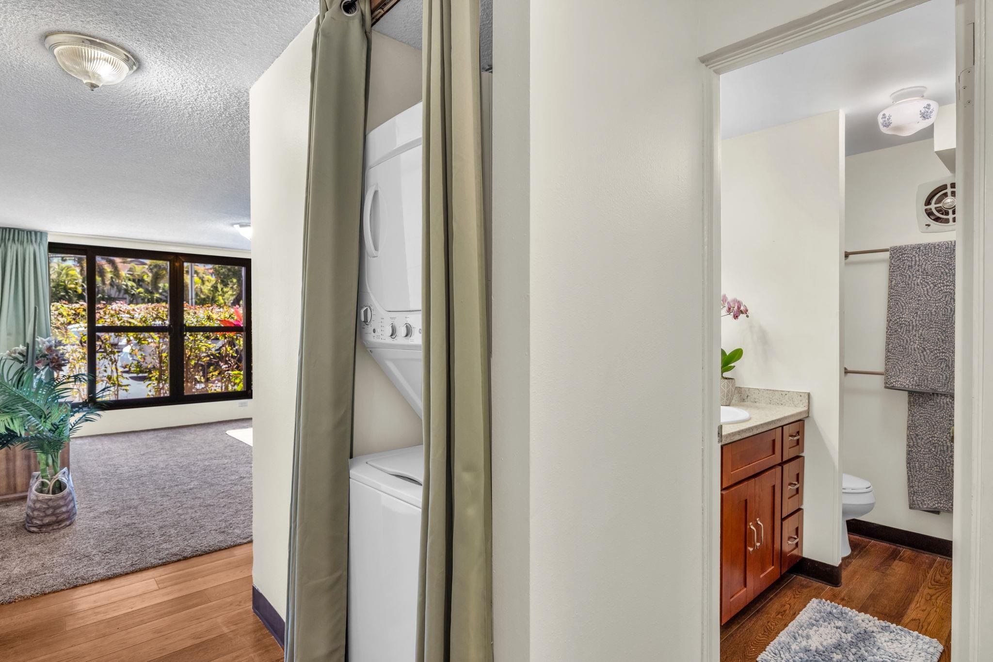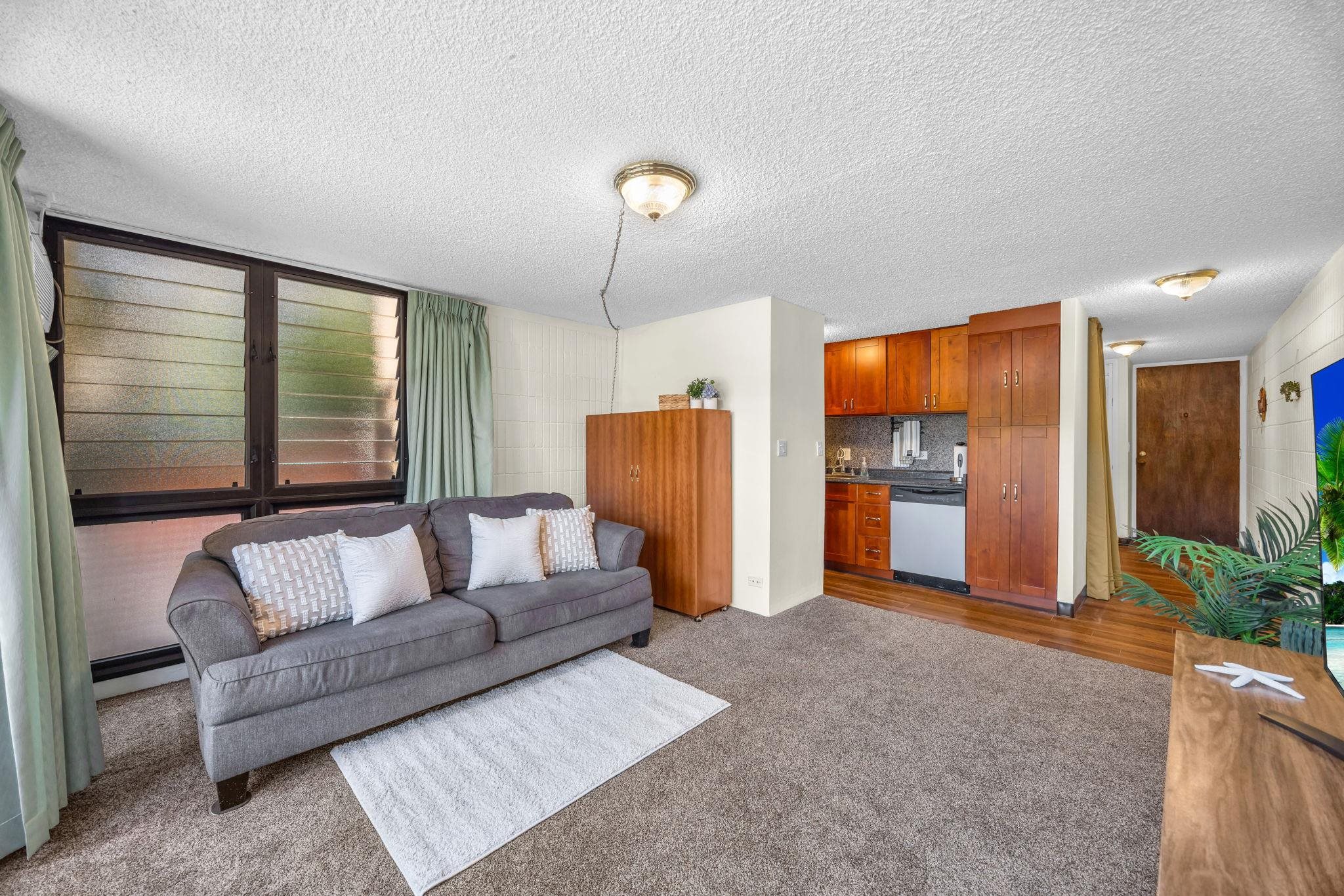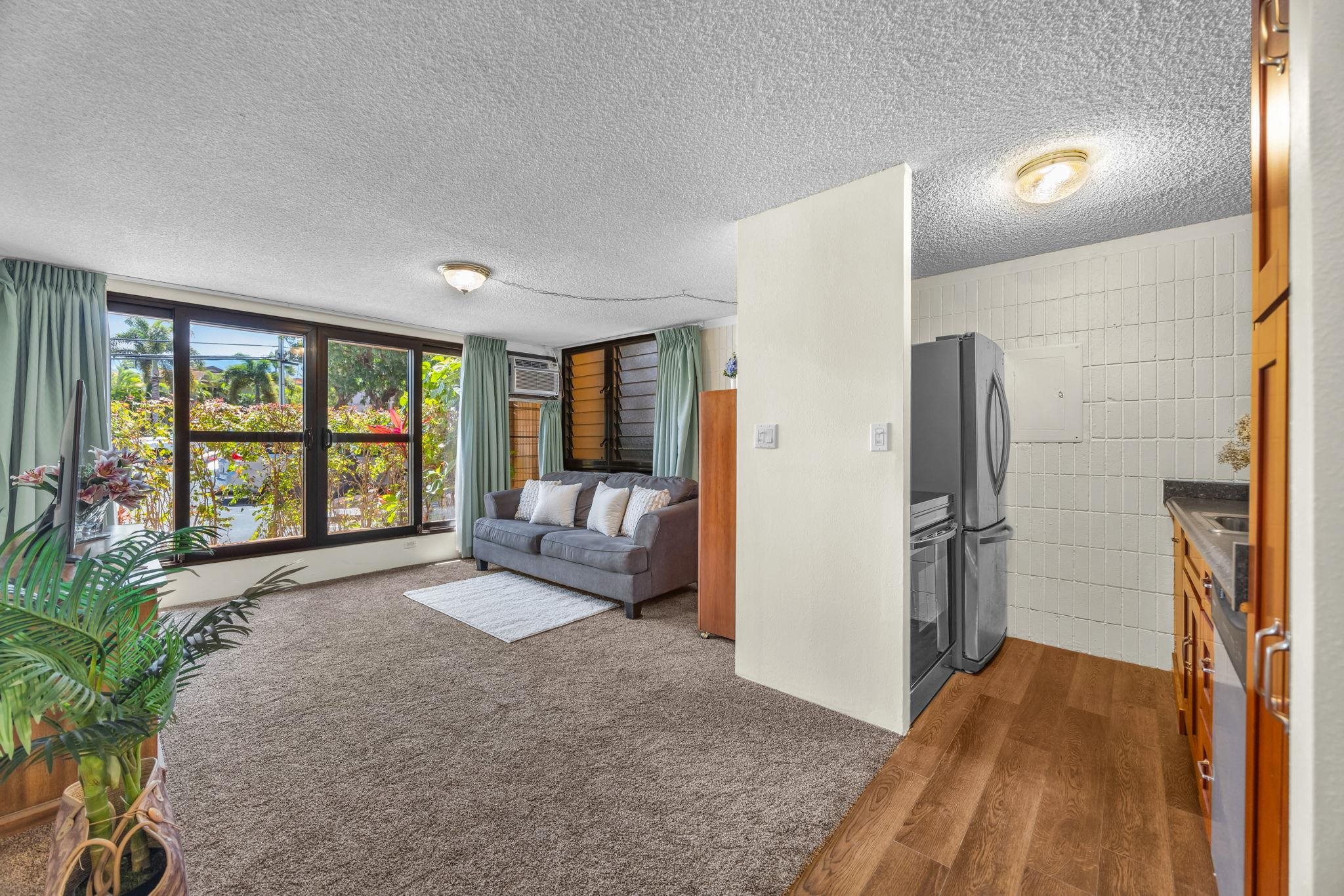 Oceanfront opportunity in Napili. This 1-bed, 1-bath ground floor unit offers 510 sf of interior living space - just moments from the shoreline. Freshly painted and well-maintained with a full kitchen, dishwasher, newer carpet, vinyl plank flooring, and an in-unit washer/dryer. Includes one assigned parking stall. Positioned for privacy at the corner of the complex, with landscaping providing a natural buffer while facing the parking area. Close access to the pool, and oceanfront grassy and BBQ areas. Nearby sandy beach at Honokowai Beach Park. Restaurants and shopping are minutes away. Zoned A-2. Short-term rentals currently permitted; future use subject to change. Buyer to do due diligence. Don’t miss the opportunity to explore the potential this unit offers.