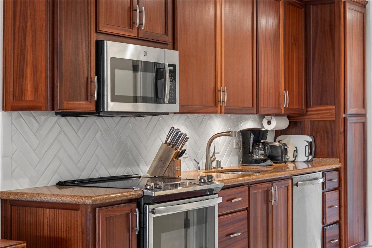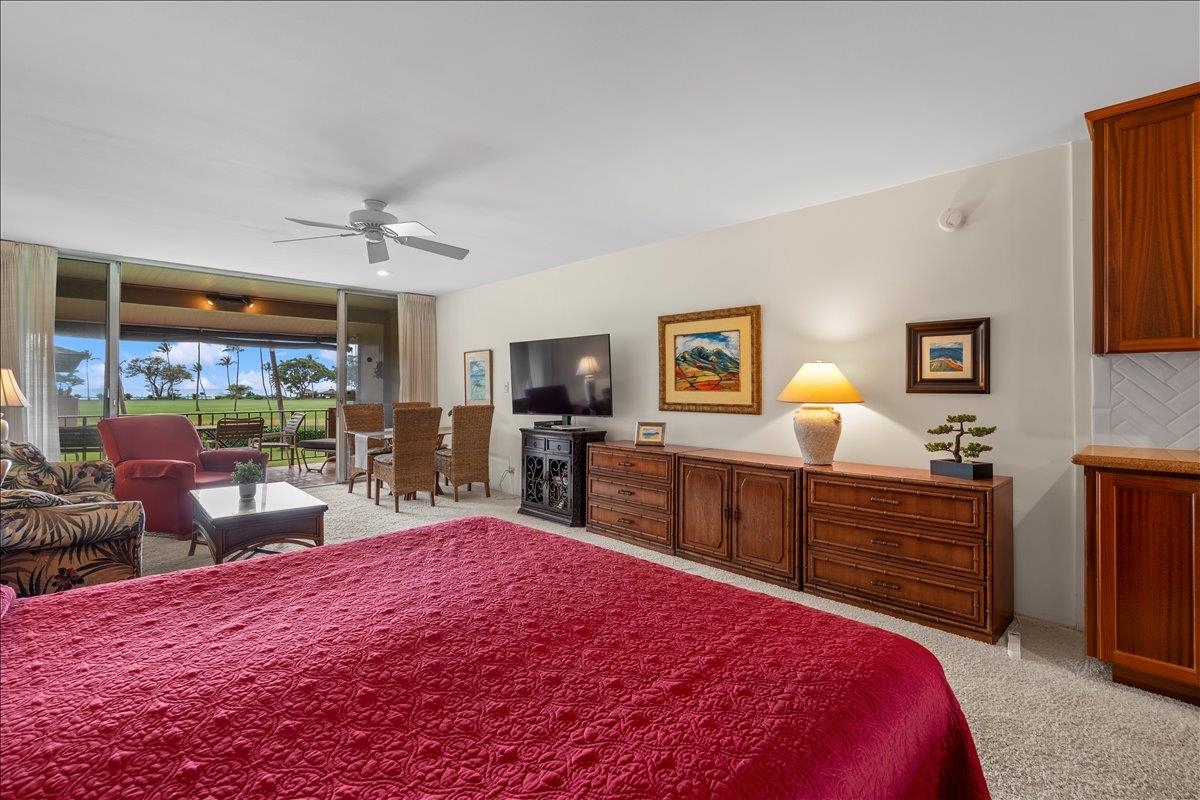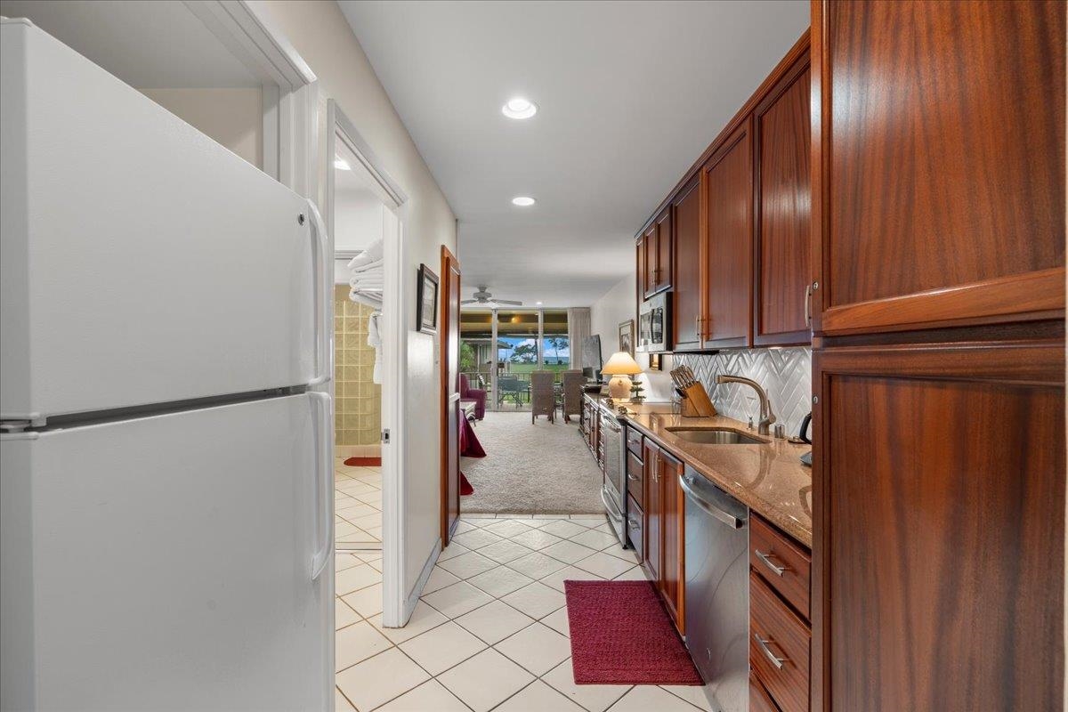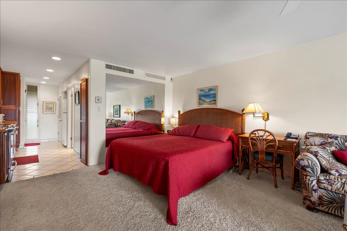 Welcome to your island retreat at Maui Eldorado, ideally located in the desirable J Building and just a short distance to the exclusive beachfront cabana. This well-maintained studio unit captures the essence of relaxed Kaanapali living, with lovely ocean and golf course views adding to its appeal. Remodeled approximately 15 years ago and meticulously cared for by the current owners, the unit features warm wood cabinetry, granite countertops, and a crisp white tiled backsplash, creating a clean and inviting kitchen space. The cohesive design continues into the bathroom, where matching materials and tones provide a seamless, elegant look. A walk-in glass and tile shower adds a touch of modern comfort and style. Maui Eldorado offers exceptional amenities including three swimming pools, a hot tub, and a state-of-the-art fitness center. Enjoy a peaceful and quiet setting while still being just moments from the energy of Whalers Village, where you’ll find shopping, dining, and a wide array of beach activities. This is a leasehold property, with a monthly lease rent in addition to the monthly maintenance fees, which include utilities. Property is zoned A-2 and subject to Bill 9.